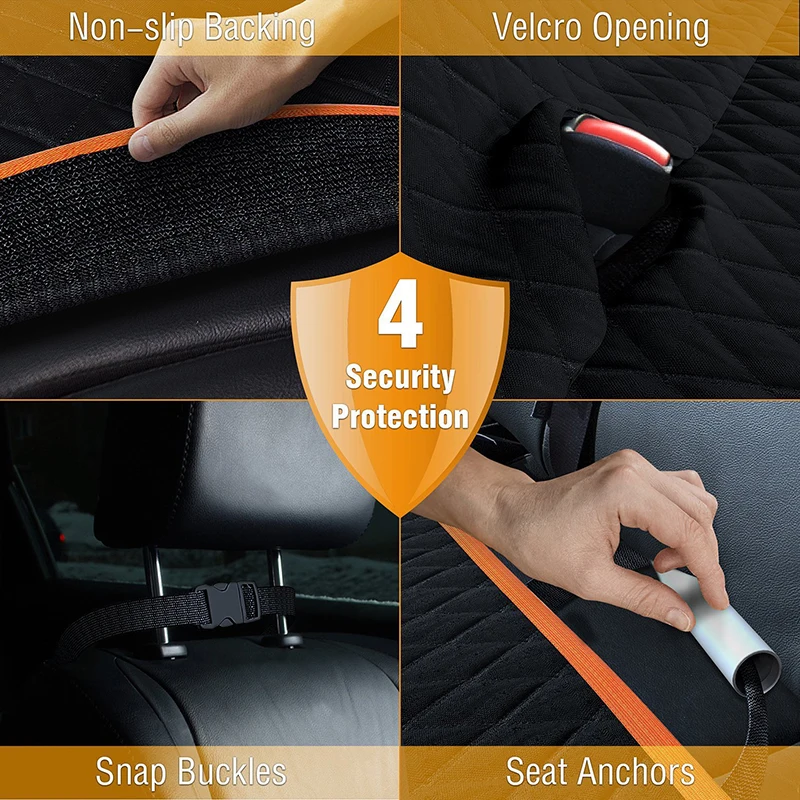 The back row is three, and the three is the seamColor:Black-orangeSize: 137*147CM, two seat largeMaterial: 600D Oxford waterproof cloth, PP cotton sandwich, anti-skid gauzeKeep the car clean, clean the car when the pet is sick, and prevent the hair from sticking to the car seat, keeping the car clean,for SUV ;At the same time, let the driver rest assured of driving, from the pet harassment, driving, dogs will be quiet, lying in its own small space.It can match the headrest or socket seat belt, which makes the pet safer!package list:1 pcs pet carrier bag