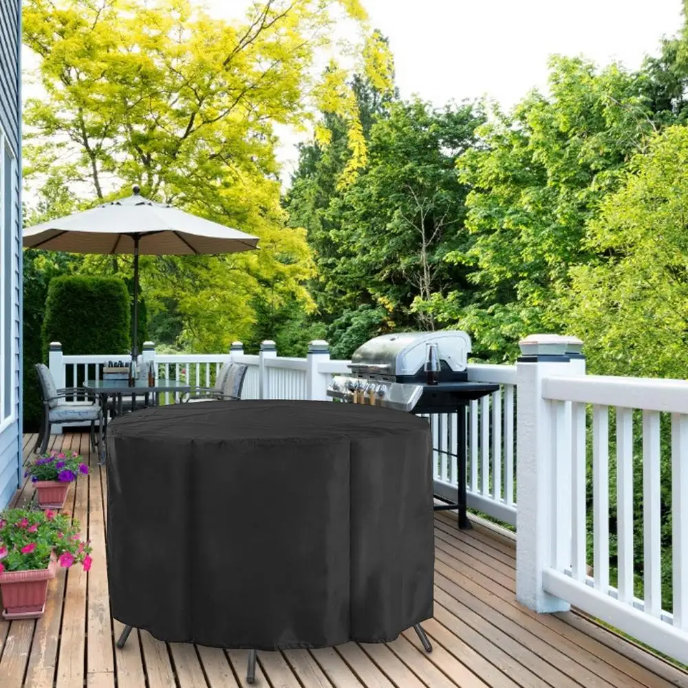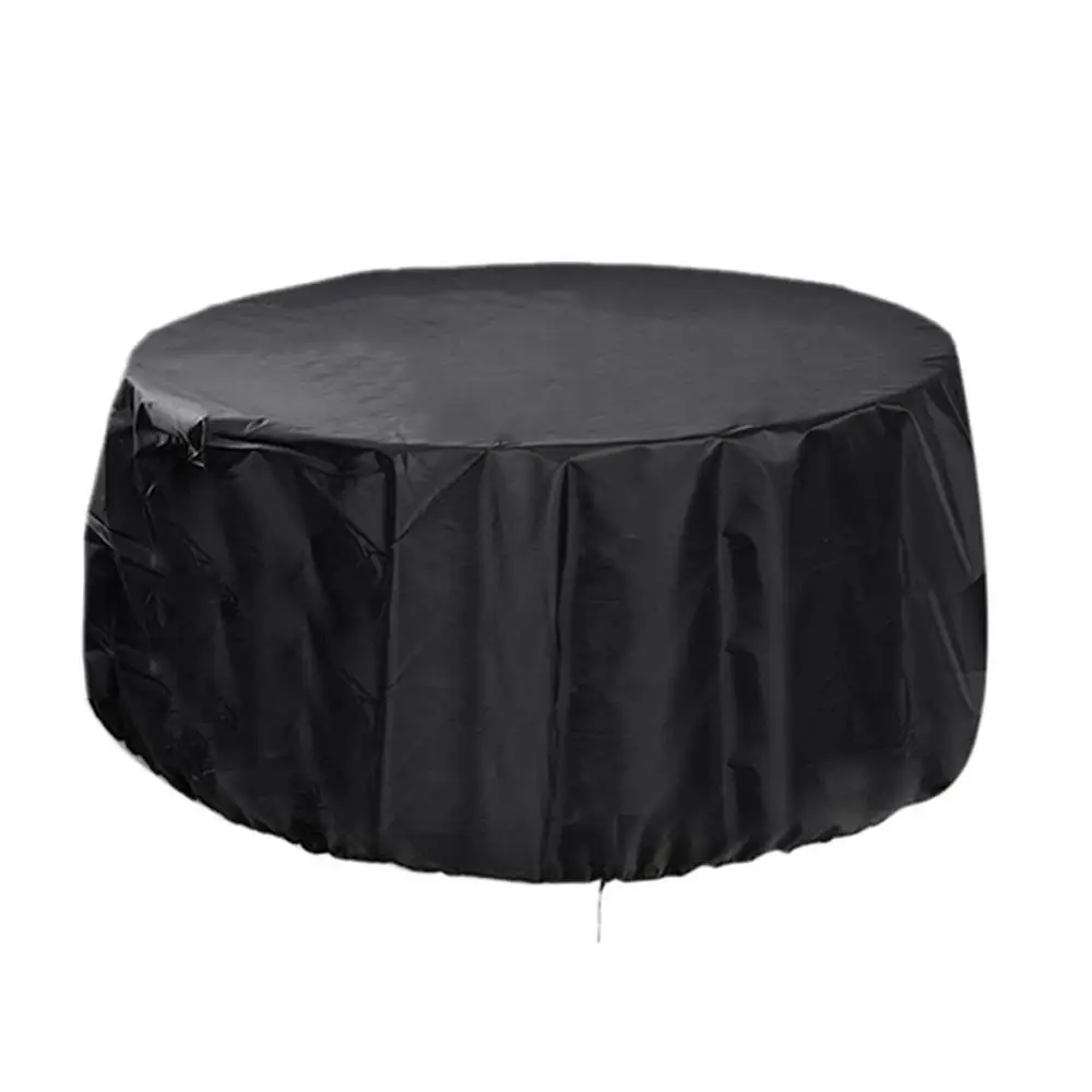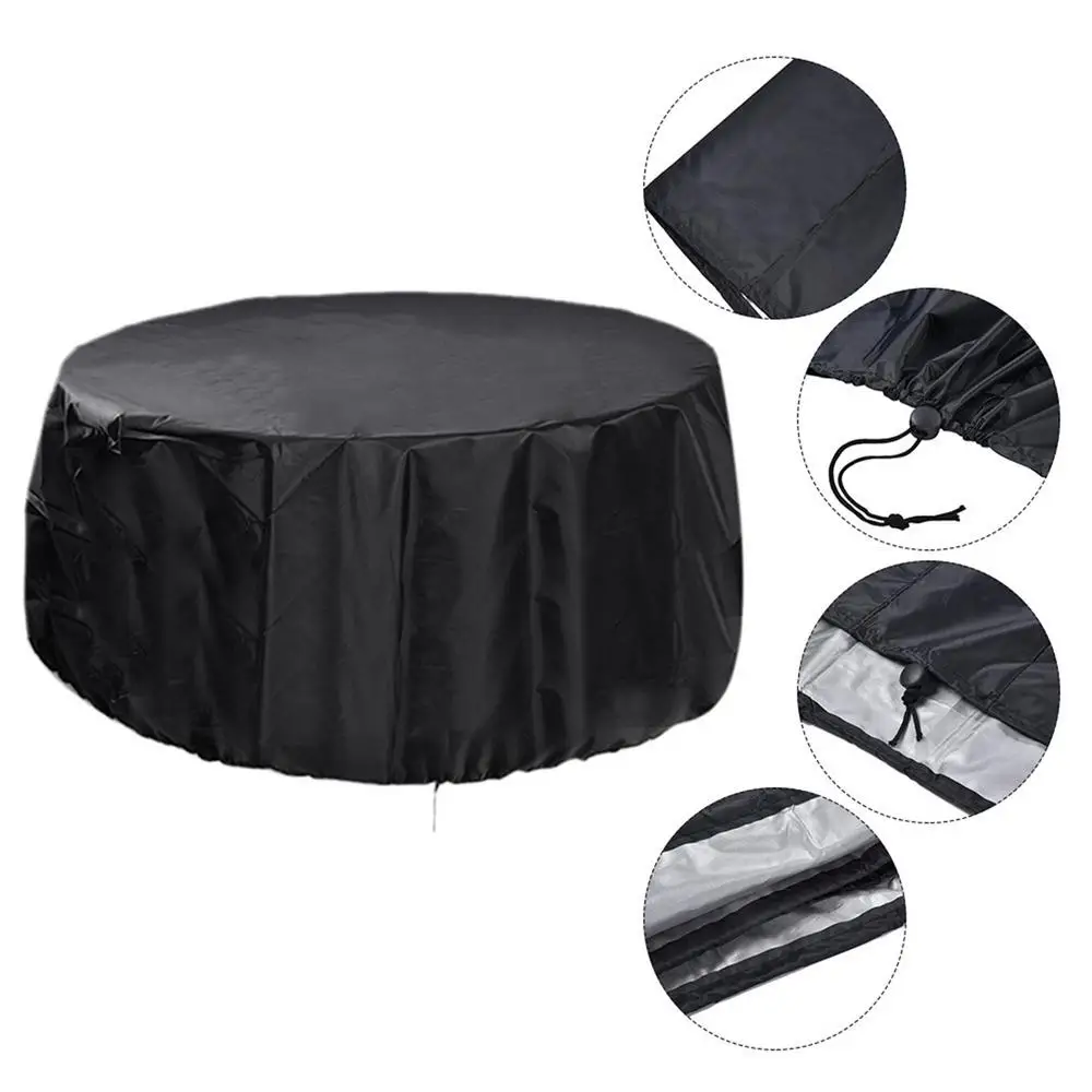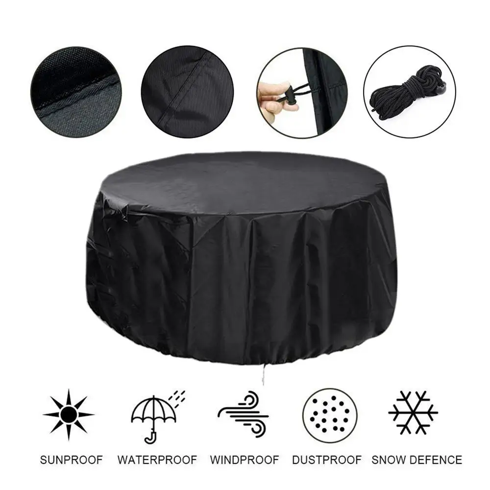 2. Material impermeable: cuenta con poliéster, resistente a la intemperie, resistente a la decoloración y al desgarro, con un revestimiento resistente a los rayos UV y un respaldo laminado impermeable sin PVC, la cubierta redonda para muebles de exterior se puede utilizar durante todo el año.