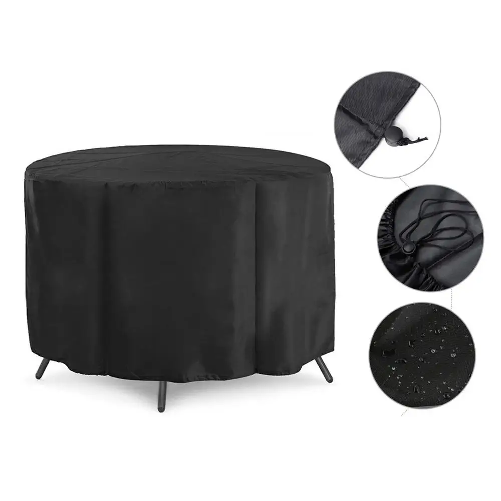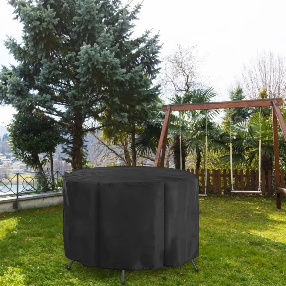 1. Evita daños: La cubierta para mesa redonda de patio evita daños causados por el viento, la lluvia, las heladas, los rayos UV, la suciedad, el polvo, los excrementos de pájaros, la savia de los árboles y los animales pequeños. Mantenga su mesa de patio seca y segura.