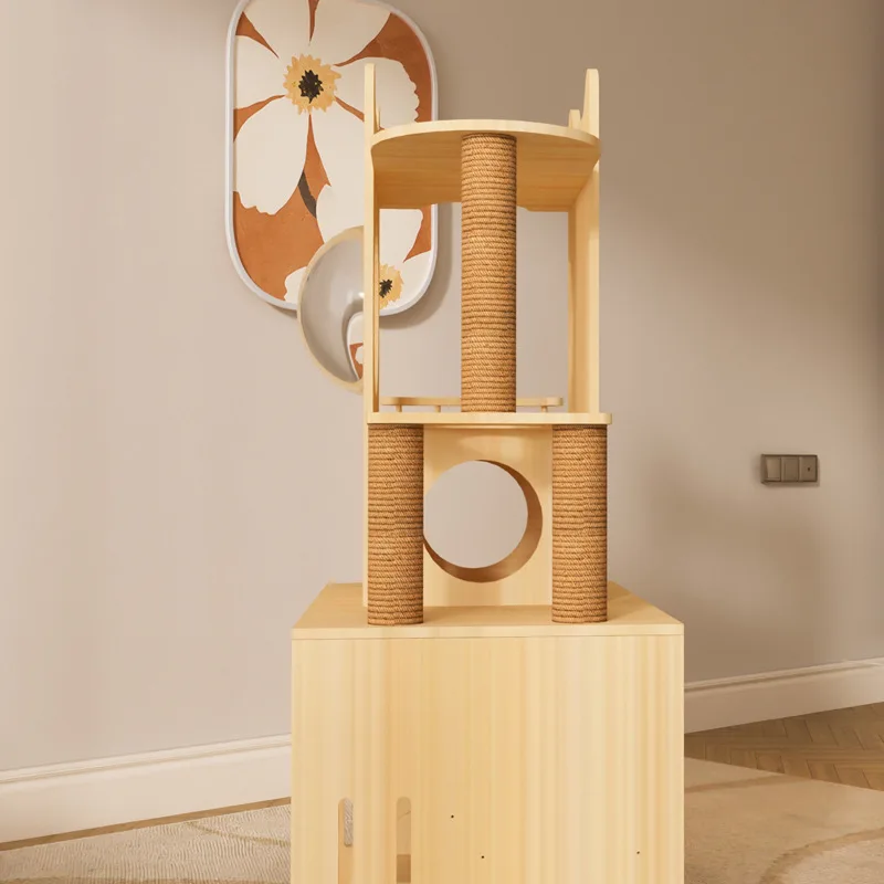 Gabineta de madera maciza para gatos, juguetes para gatos multicapa para el hogar, juguetes de madera para mascotas