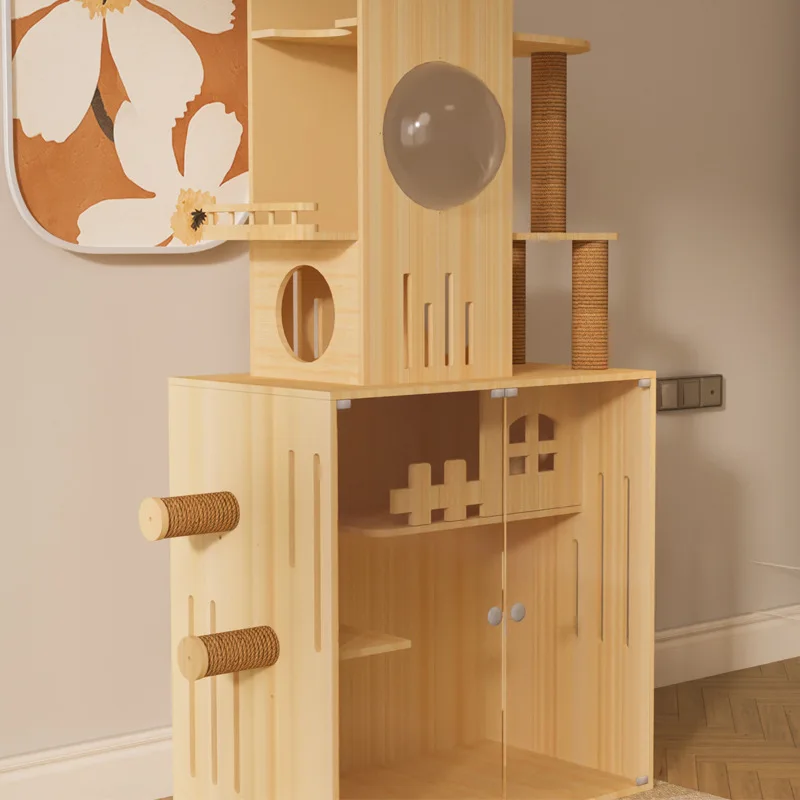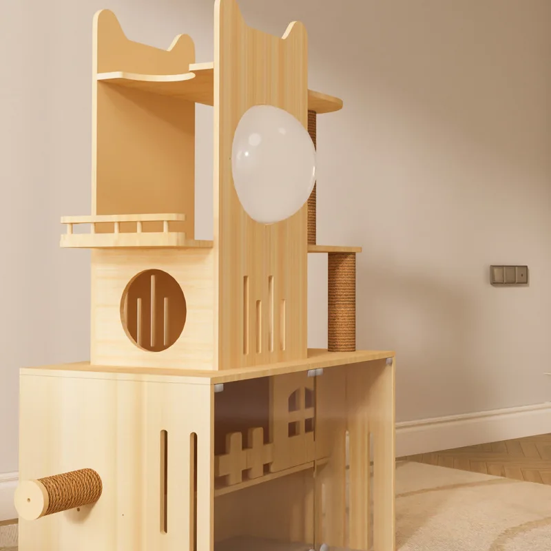 Gabinete de madera maciza para gatos, juguetes domésticos multicapa para gatos, jaula de madera, nido para ganado de mascotas, productos, suministros, muebles, rascadores