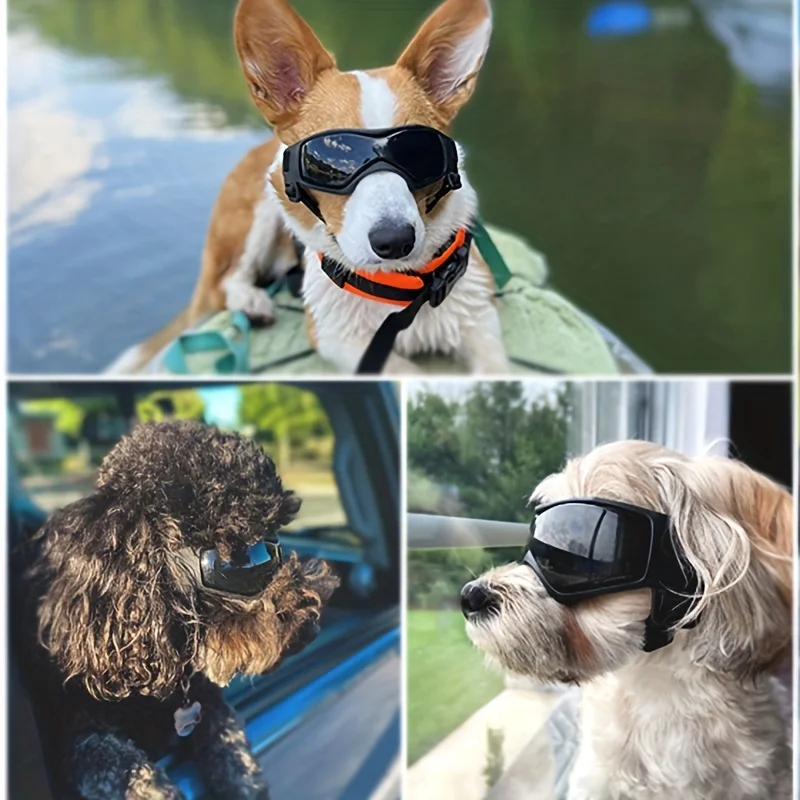 Gafas ajustables para perros para razas pequeñas a medianas: protección UV, resistentes al viento, antivaho, a prueba de polvo y a la nieve