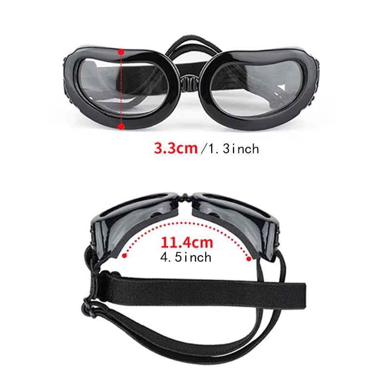 【Apto para】:Circunferencia de la cabeza aplicable: 20-32 cm, circunferencia de la mandíbula baja aplicable: 17-24 cm. Peso 1,27 oz. Adecuado para cachorros, Yorkshire Terrier, Dachshund, Barle, Shih Tzu, Schnauzer en miniatura, Chihuahua, Pug, Pomerania, Boston Terrier, Maltés, Teddy, Bichon Frise, Shorthair, Balinés, etc. (Mida el tamaño de la cabeza y la mandíbula del perro antes de ordenar las gafas de sol para perros).