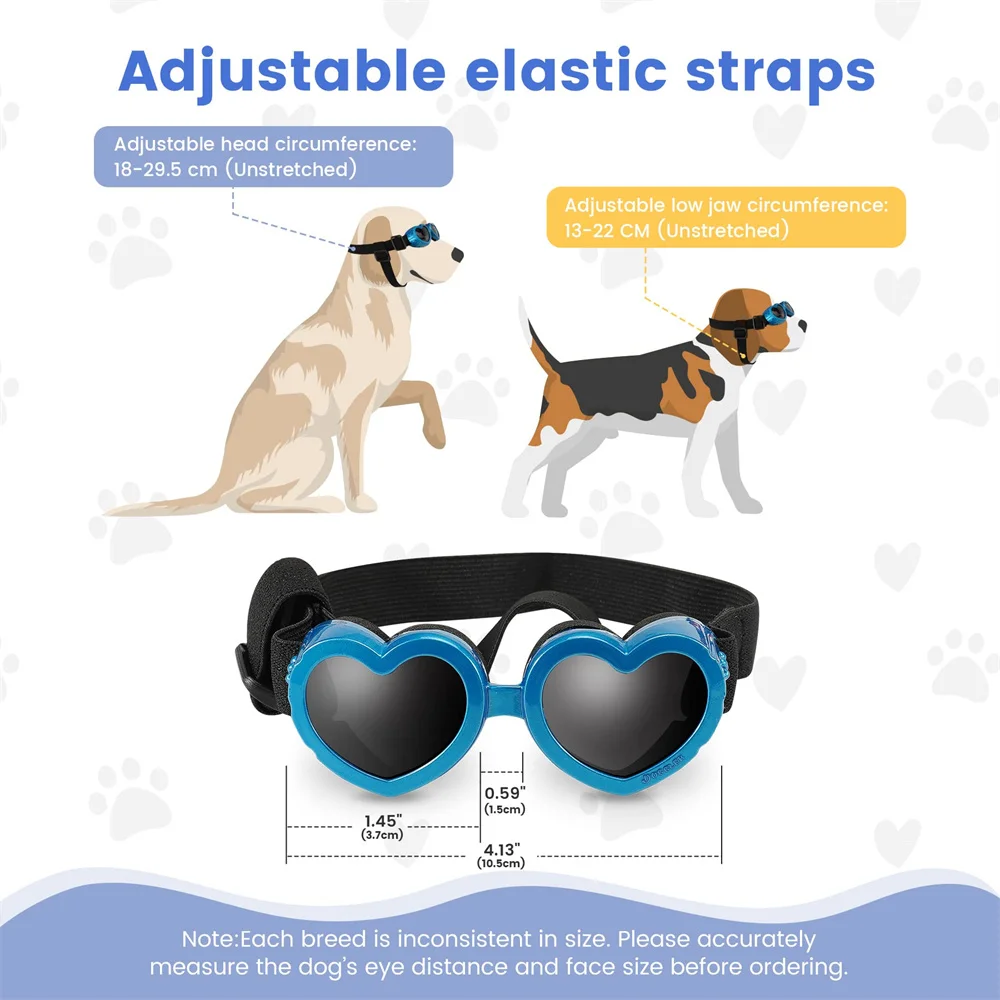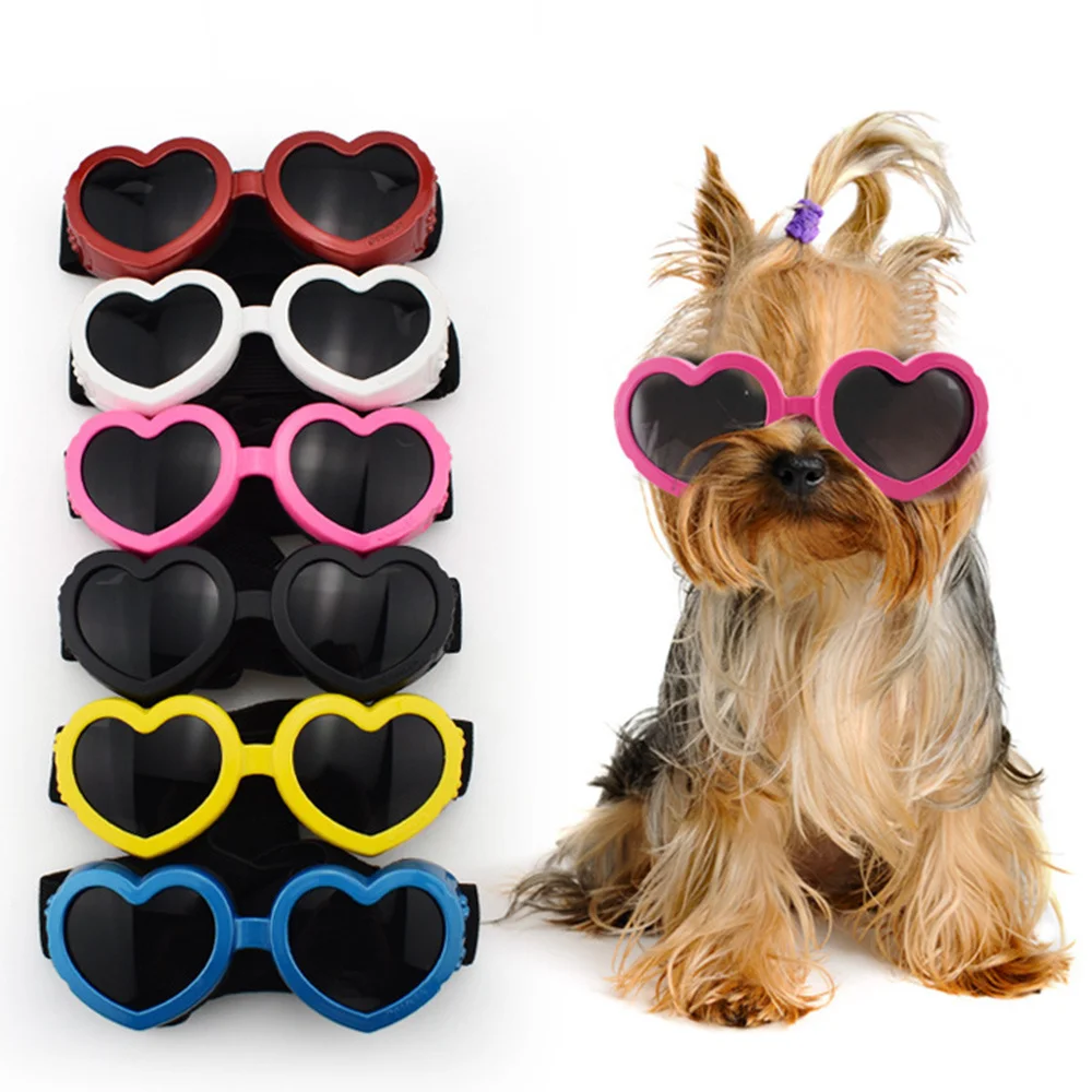 Gafas de sol de moda para perros, lentes ajustables con forma de corazón para mascotas pequeñas y medianas, accesorios para cachorros Shih Tzu Shiba Inu para exteriores