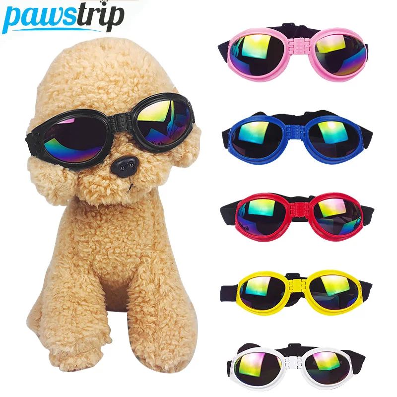 Gafas de sol plegables para perros, lentes ajustables para mascotas, Anti-Uv, con correa ajustable, suministros para perros