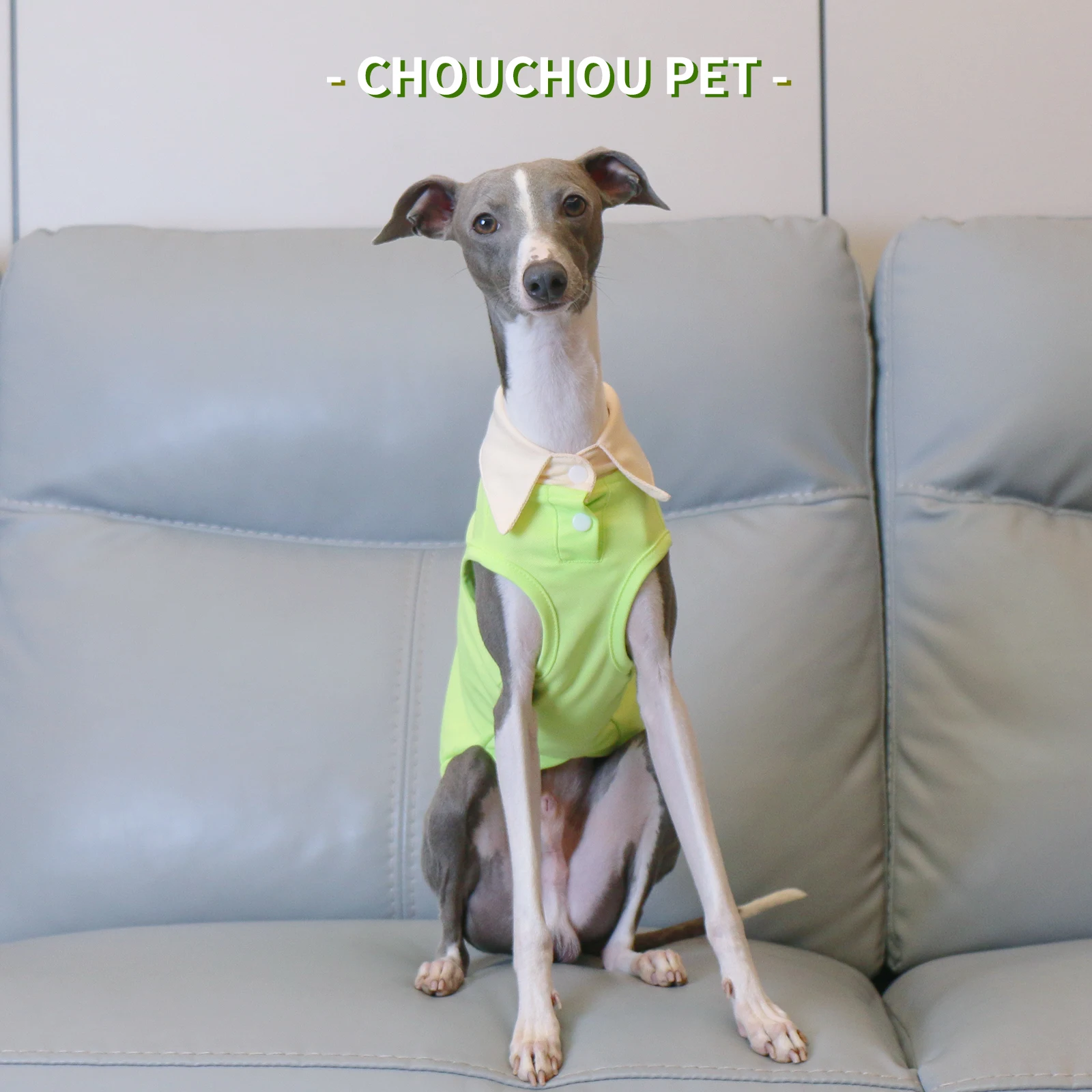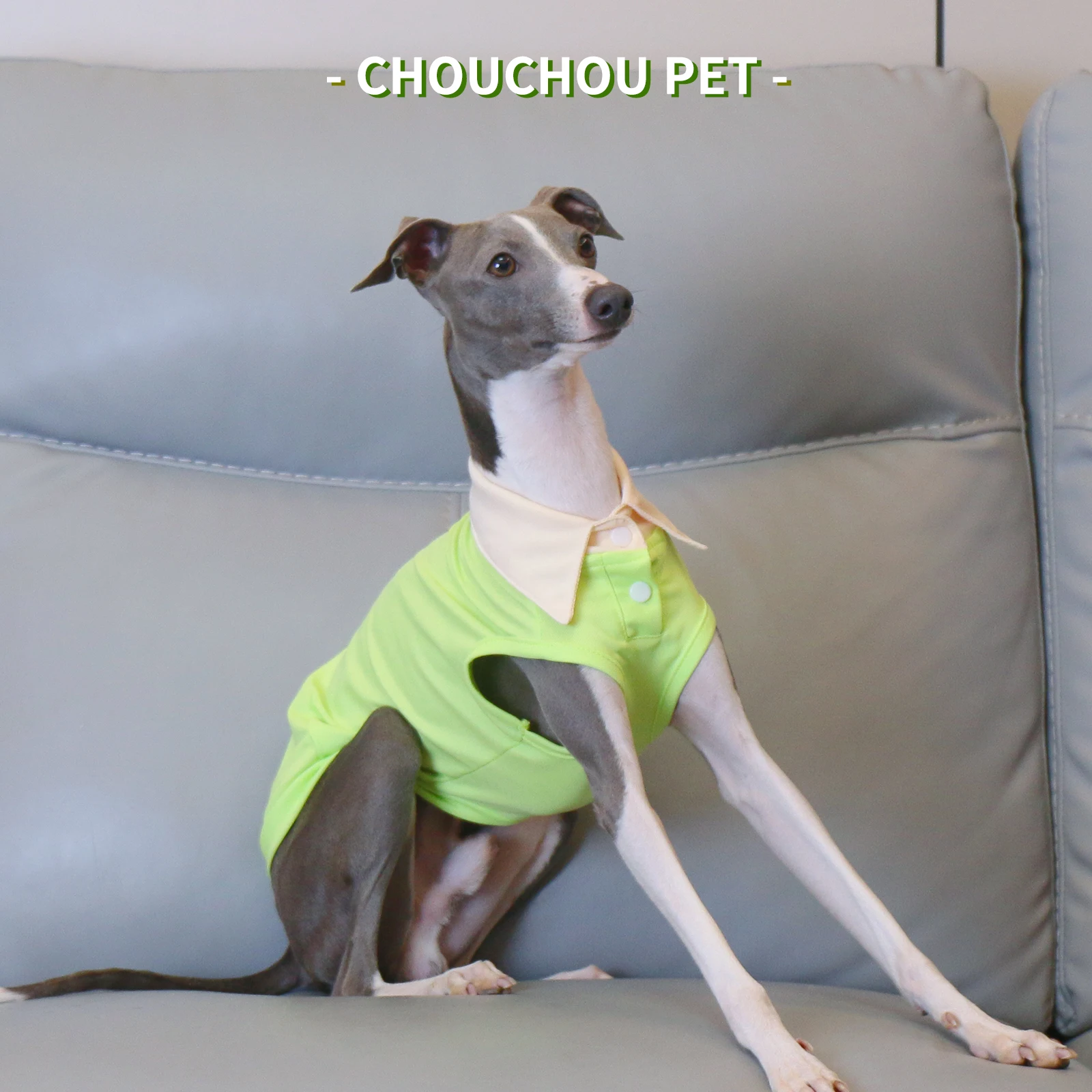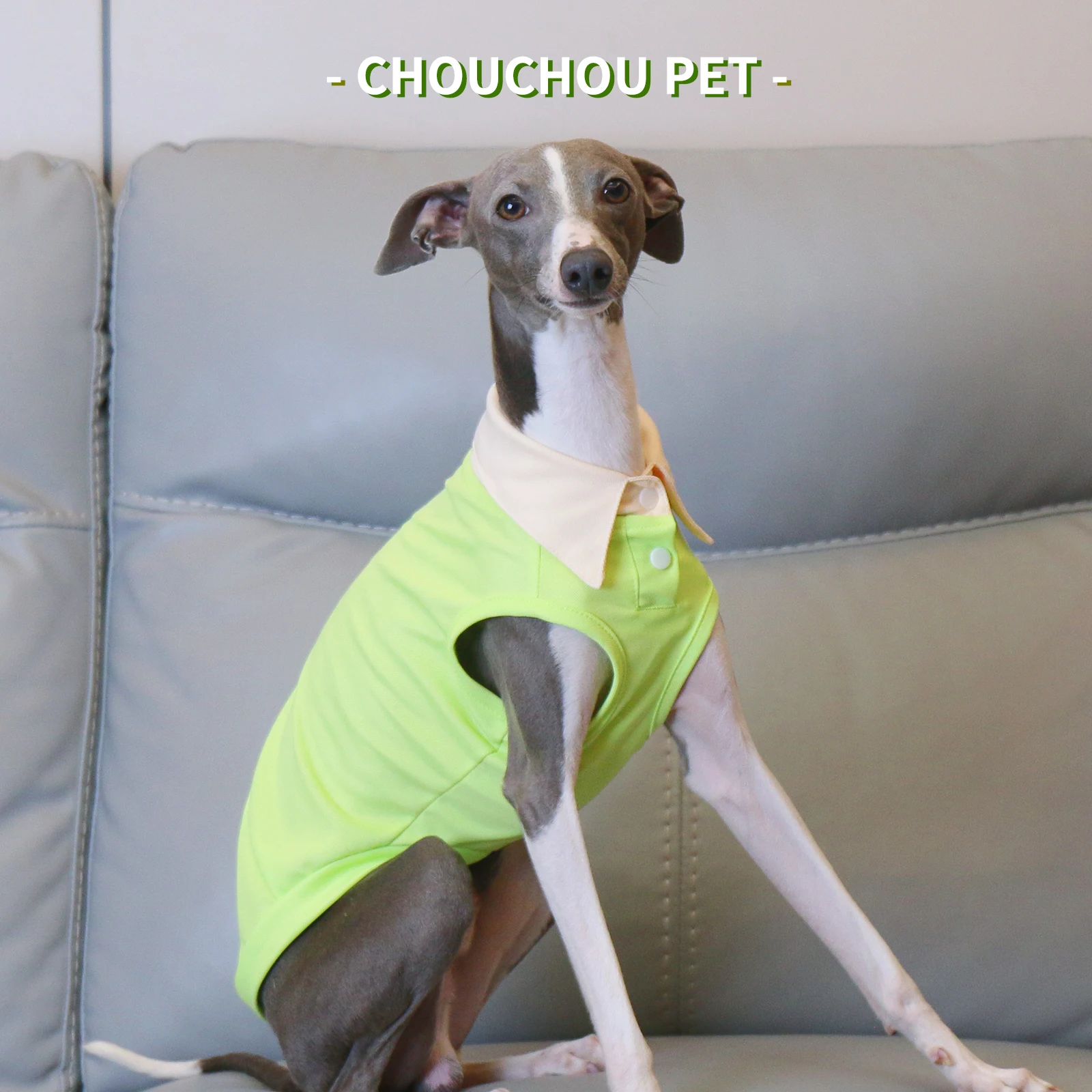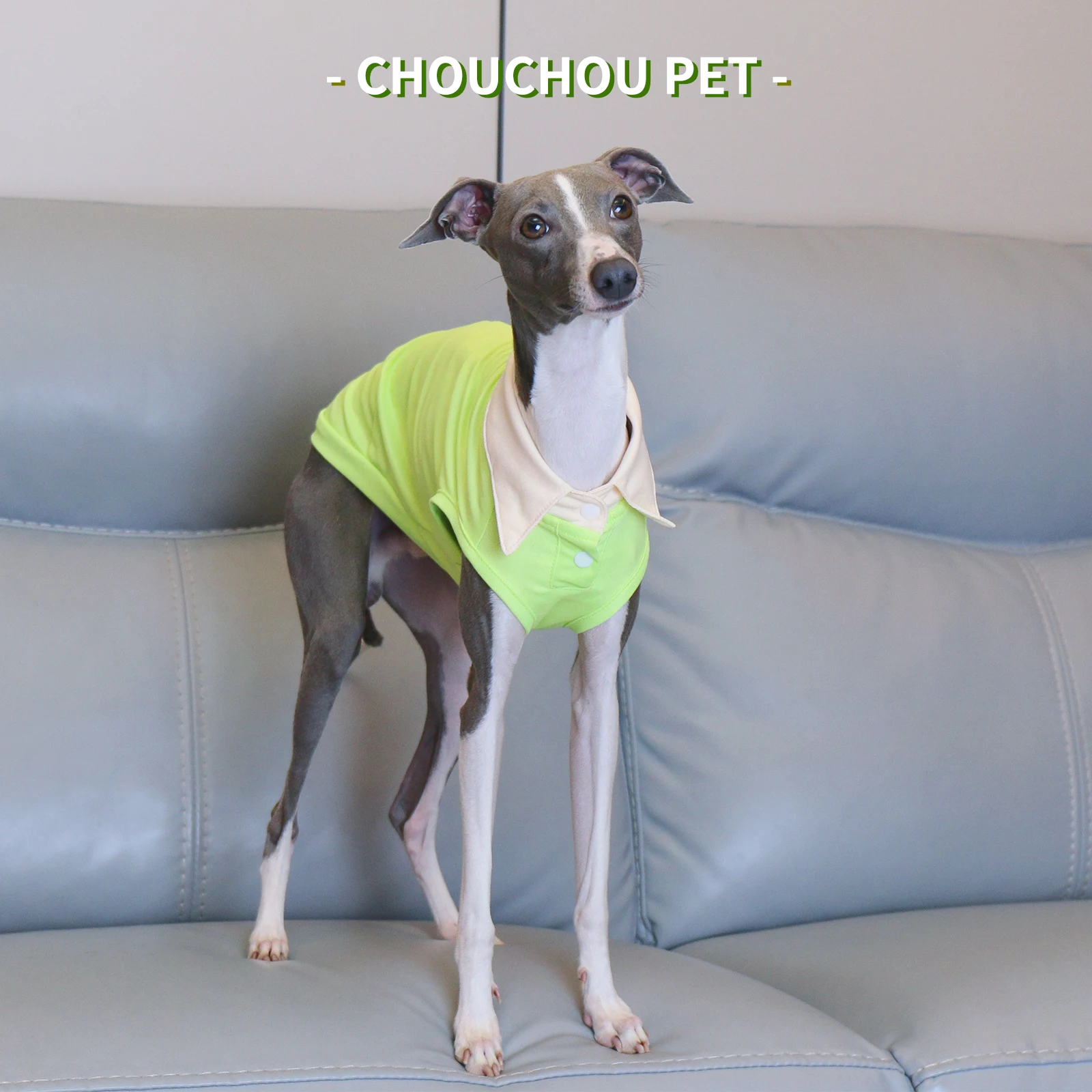 Galgo italiano Whippet Sighthound Polo de verano Camiseta para mascotas Verde fluorescente