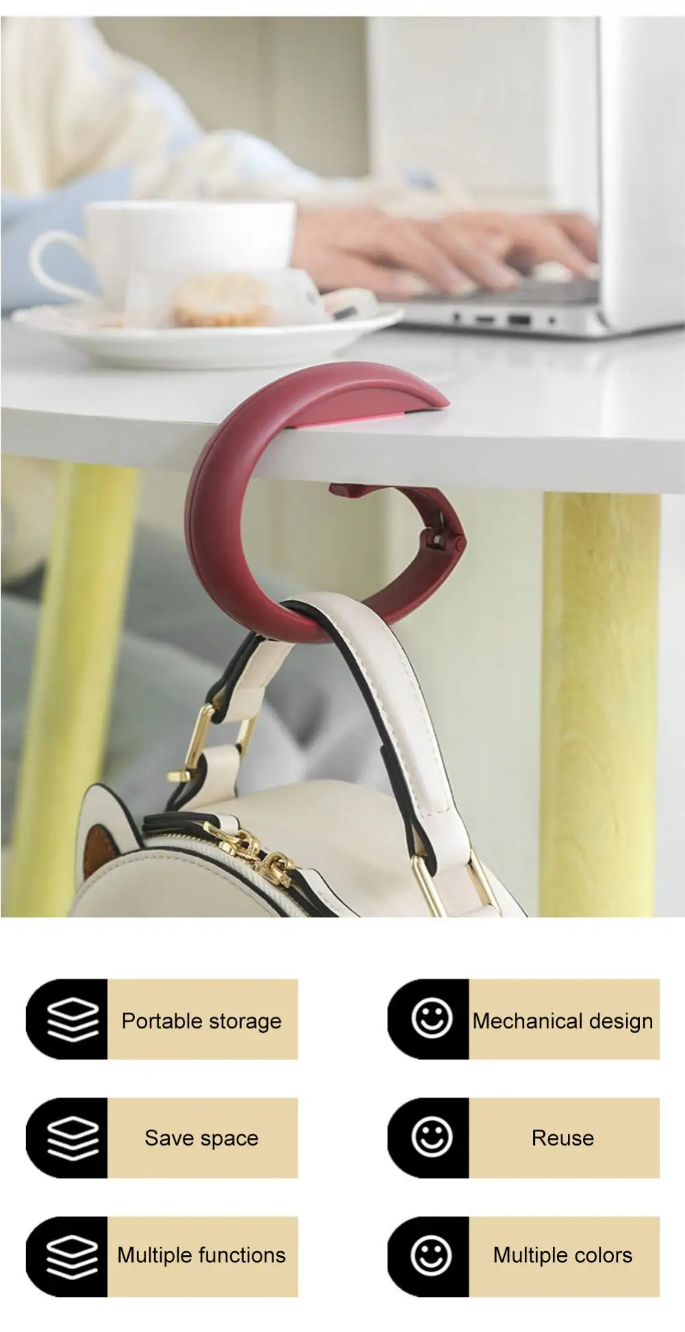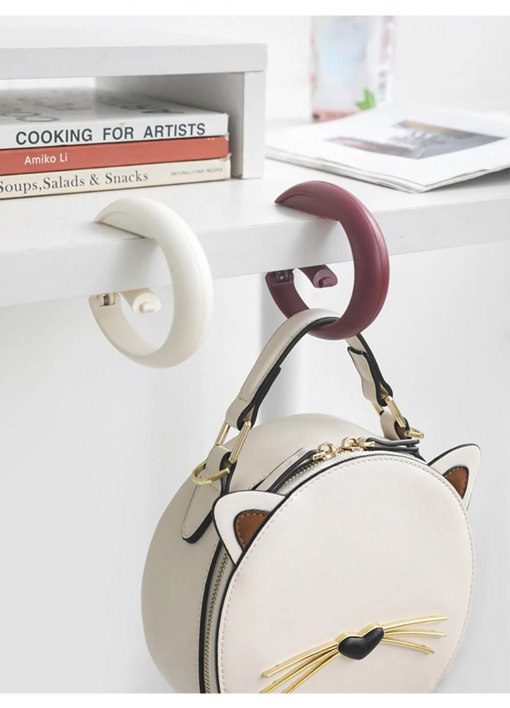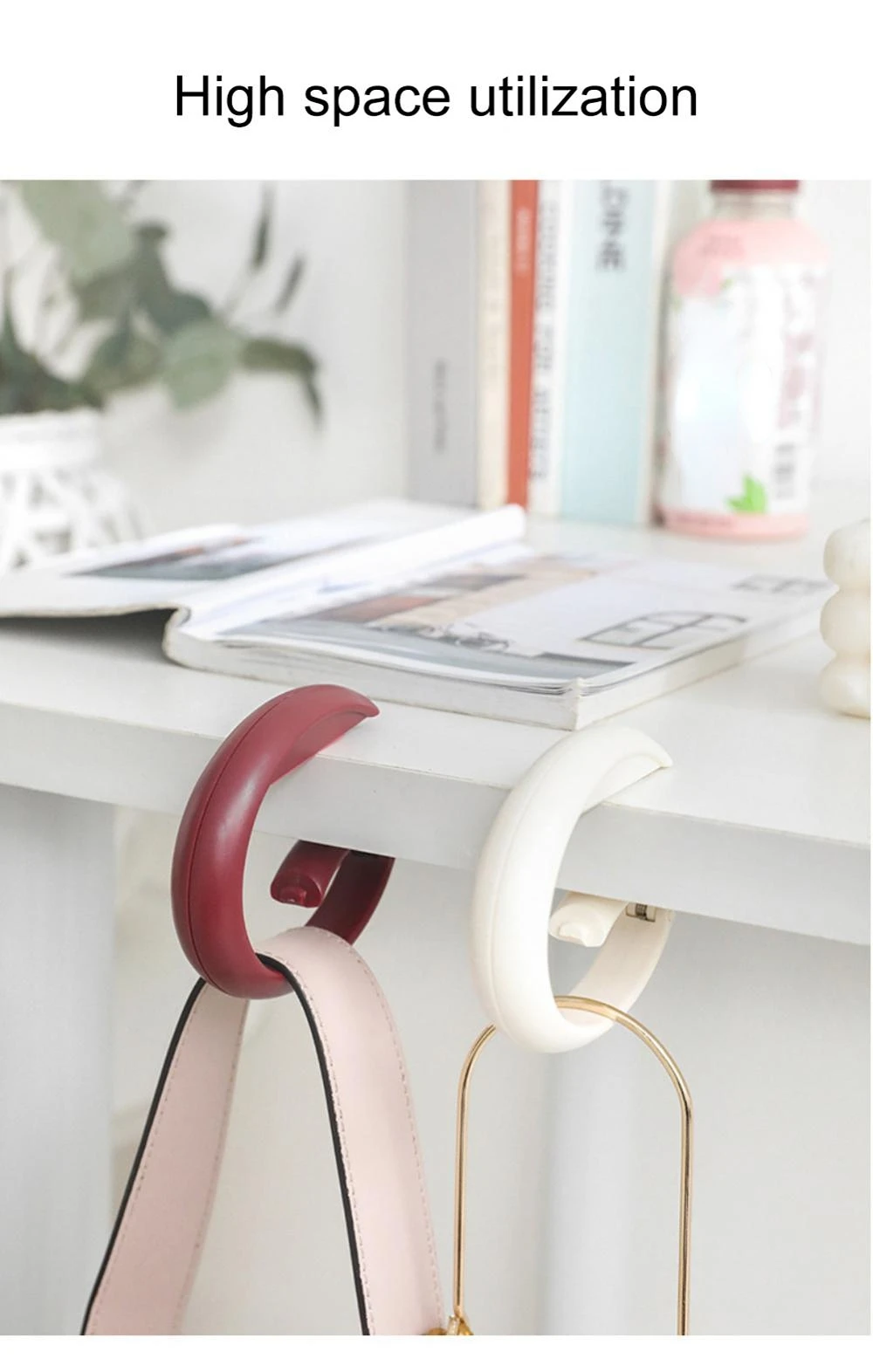 Gancho de bolsa de plástico portátil para colgar en la mesa, monedero, ganchos para bolsas, colgador de pared, colgador de bolso, soporte lateral de escritorio, almacenamiento en el hogar