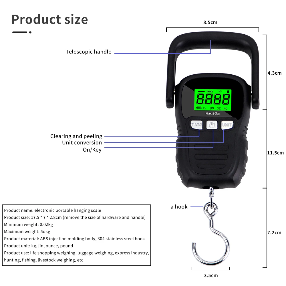 Gancho colgante portátil de 50kg/5g, báscula Digital con pantalla LCD retroiluminada para pesca, viaje, pesaje electrónico KG/OZ/TEMP