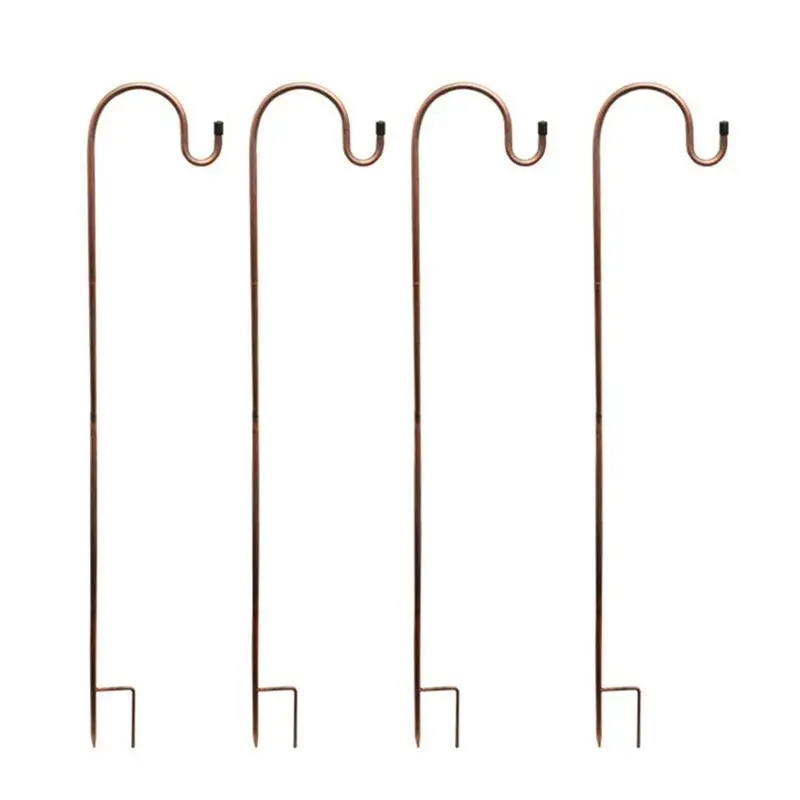 Características:1. Gancho de jardín de metal de hierro forjado de una pieza, más grueso que otros ganchos de pastor de jardín.