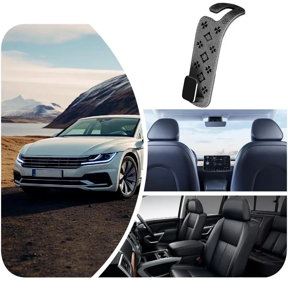 2. Accesorio conveniente: no se requieren herramientas; simplemente coloque el gancho en la barra del reposacabezas del asiento, lo que facilita su instalación y proporciona una solución conveniente para colgar bolsos y otros artículos.