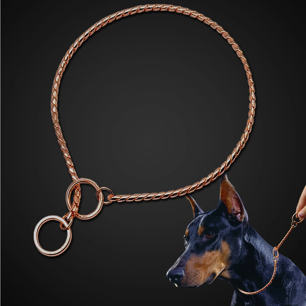 High Quality Dog Choker Snake Chain Dog Training Collar Heavy Metal Pet Slip Choke Collars Golden For Medium Large Dogs Pitbull