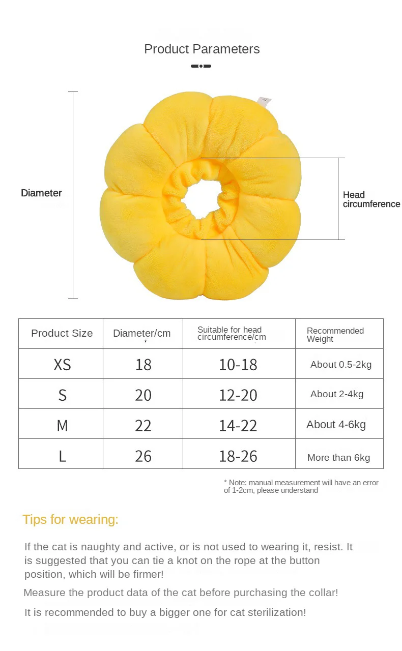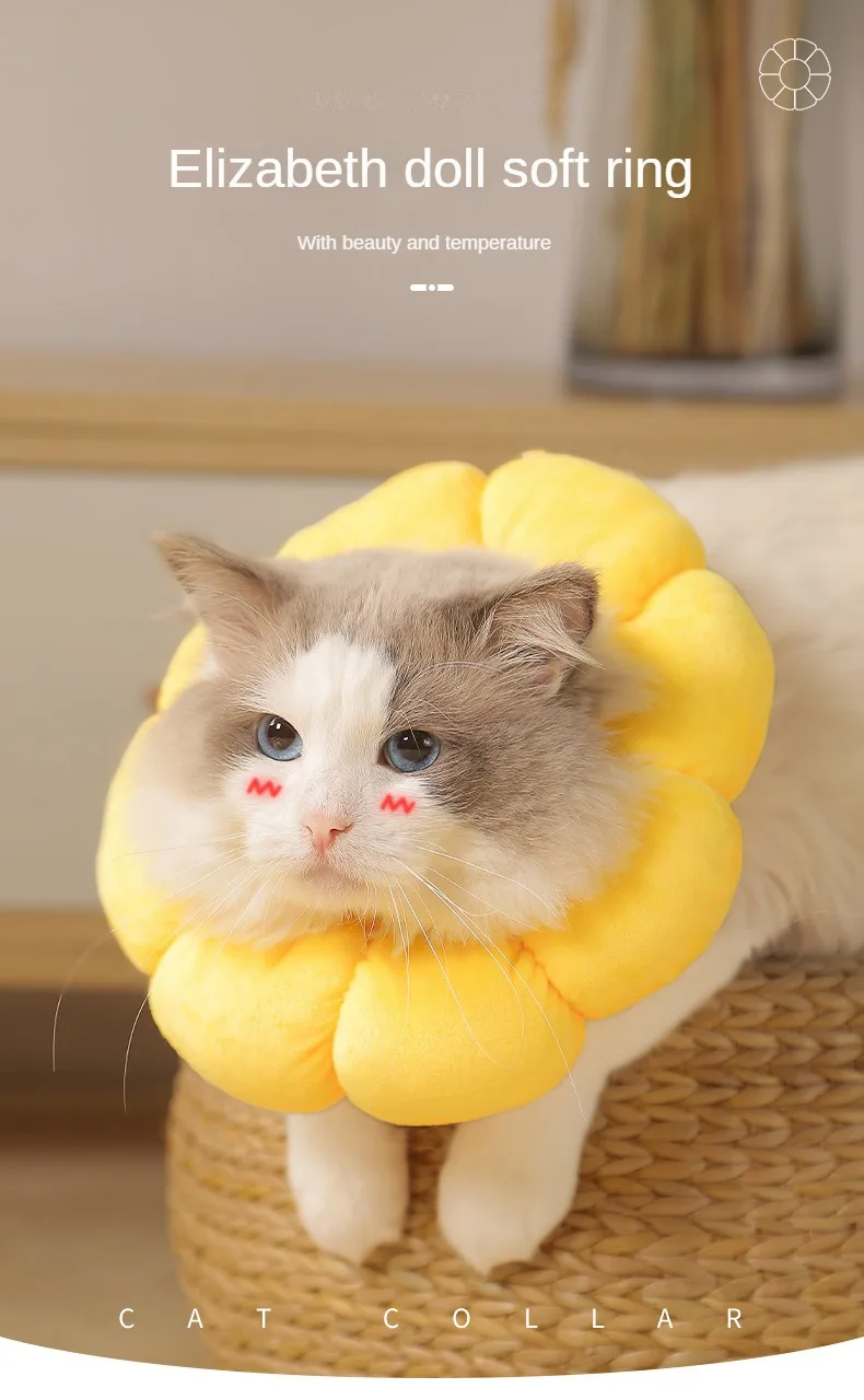 Gato girasol Elizabeth algodón cuello esterilización alimentación Anti lamer mordida belleza cabeza cubierta perro mascota Collar
