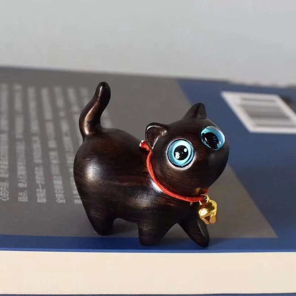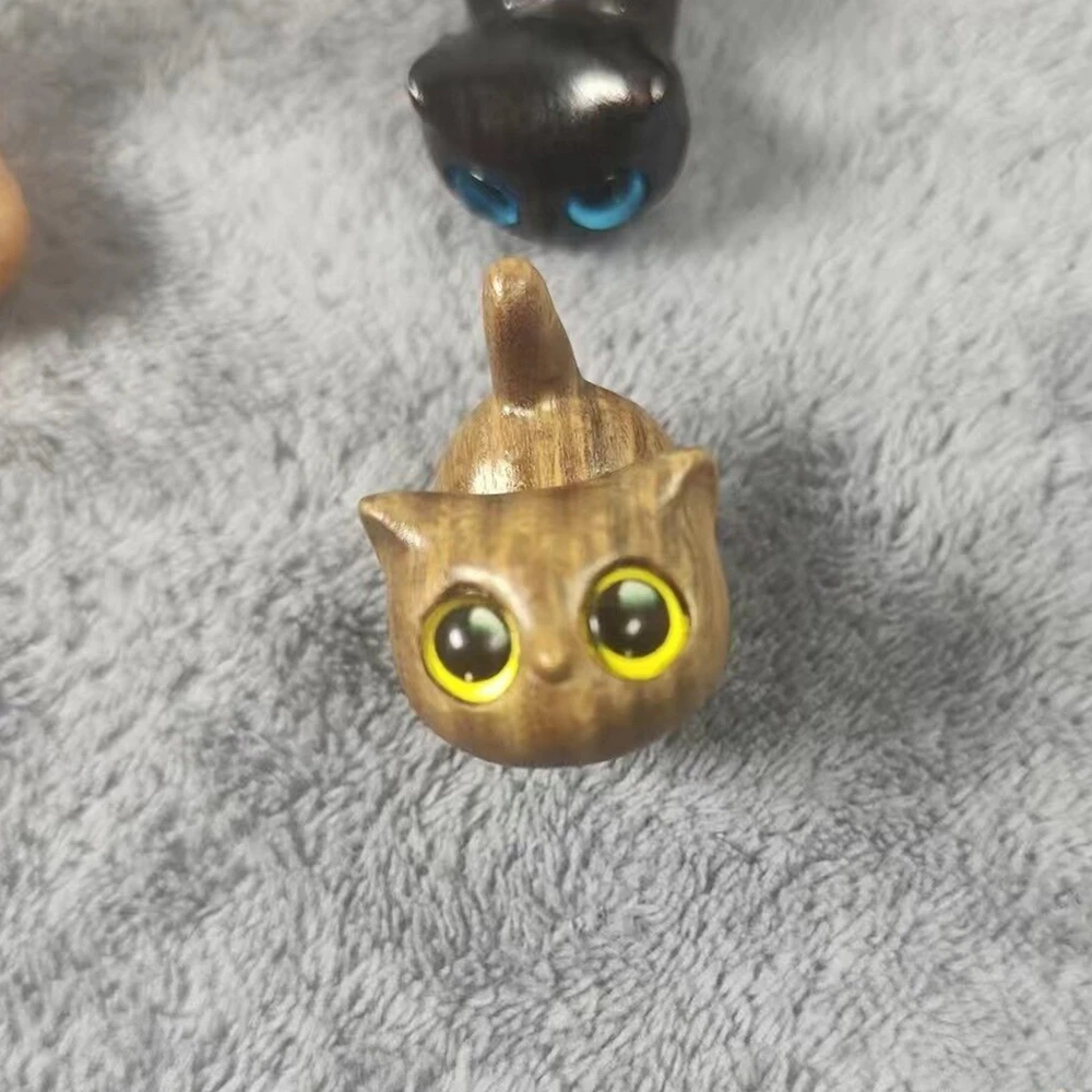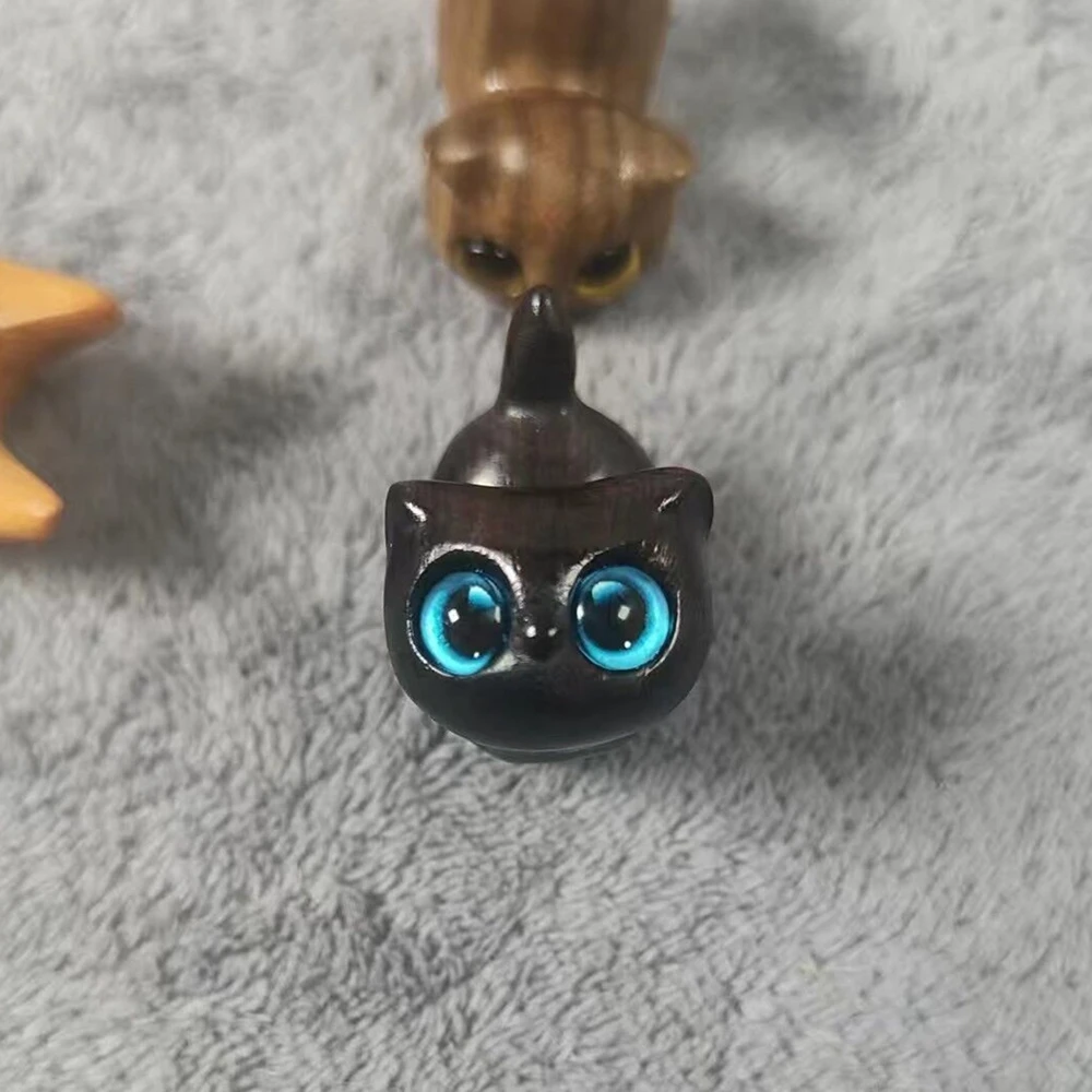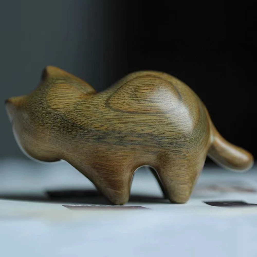 【Bonito adorno de gato】Es del tamaño perfecto para meterlo en una bolsa o guardarlo en el escritorio. Este gatito está tallado y diseñado con sándalo, ¡el foco de discusión donde sea que se coloque!
