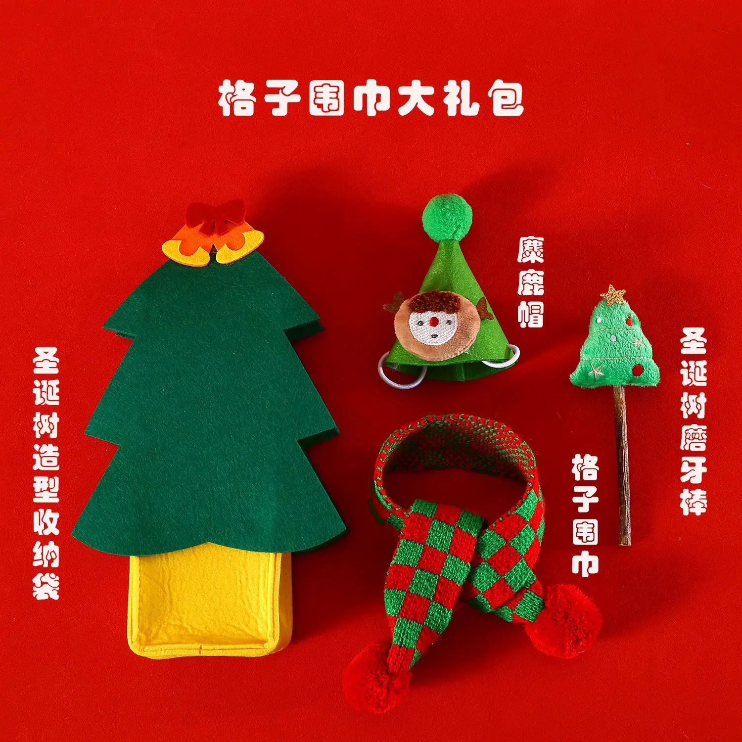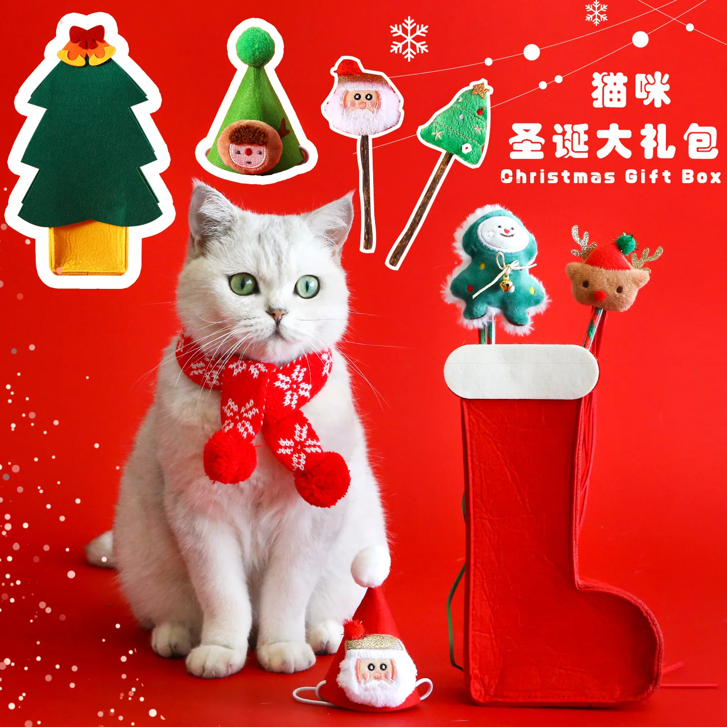 Gato mascota árbol de Navidad juguete cuello sombrero conjunto de almacenamiento caja de regalo molienda de dientes bufanda de lana de dibujos animados juguetes para gatos interactivos