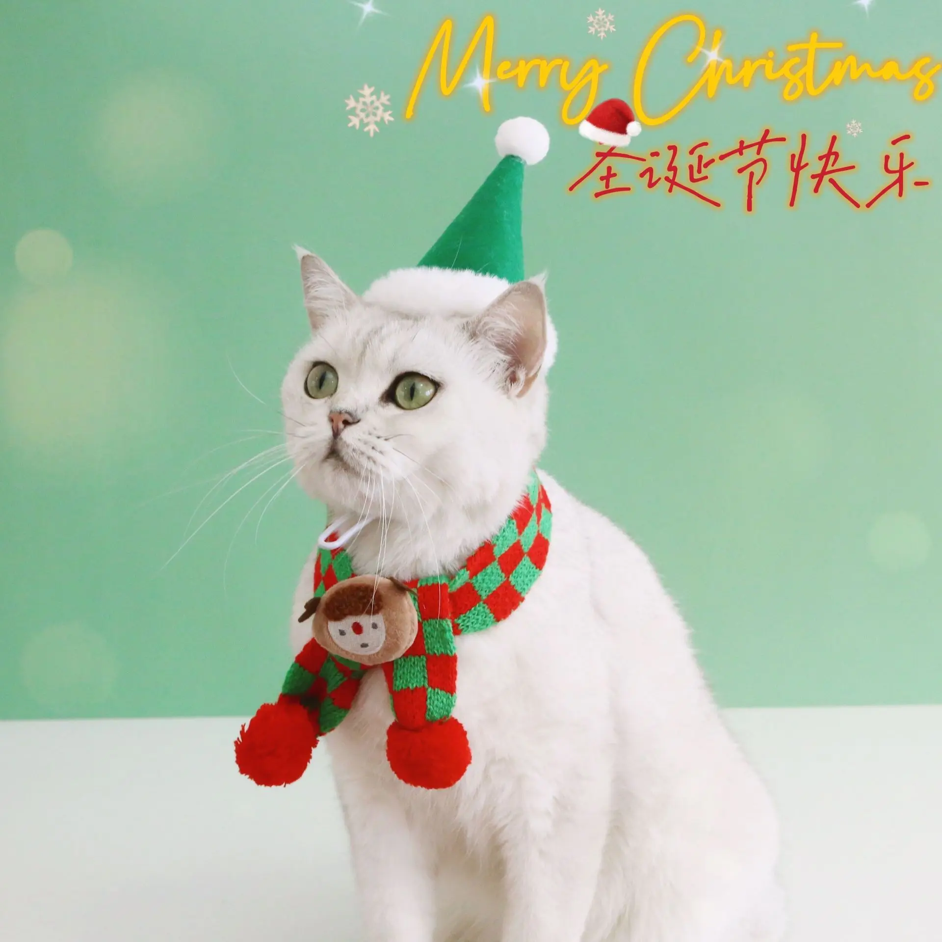 Gato mascota perro de peluche tejido copo de nieve rejilla felpa Santa Claus alce bufanda cálida cuello cachorro accesorios para perros pequeños