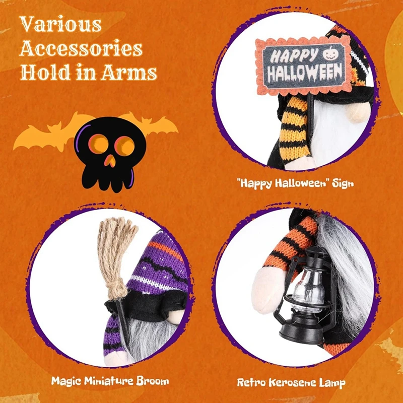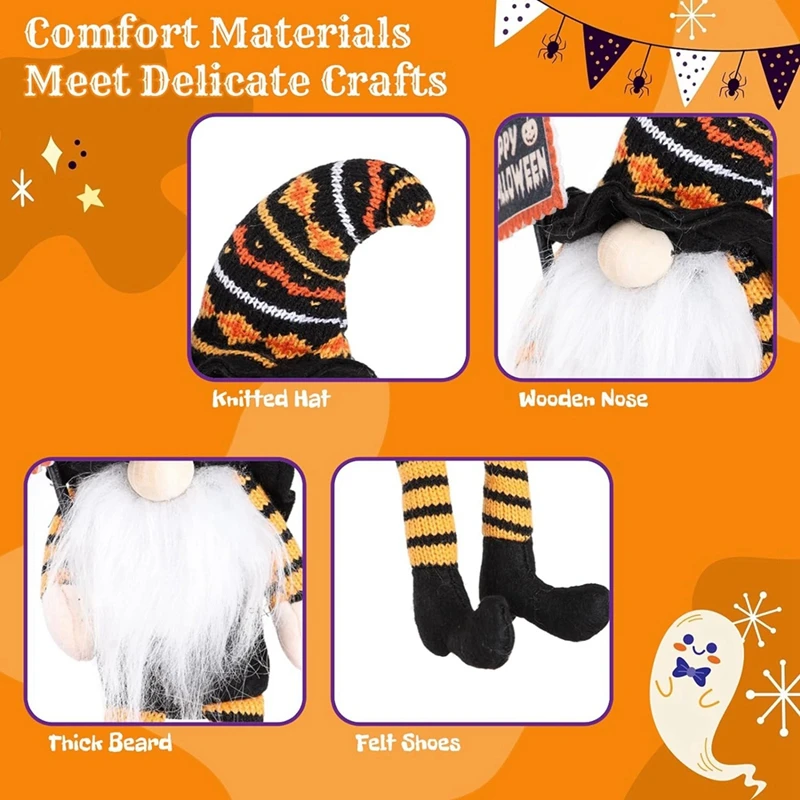 Tamaño pequeño y Diseño único: los gnomos de Halloween miden 11 pulgadas de alto desde la parte superior del sombrero hasta las piernas y 5,12 pulgadas de ancho. Son pequeños y bonitos.