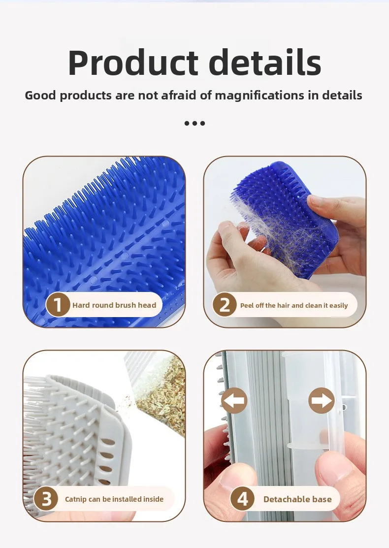 Goma para el pelo de esquina para gatos, masaje de goma para la picazón, artefacto para la picazón, auto-alto para flotar el pelo, suministros para mascotas