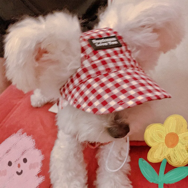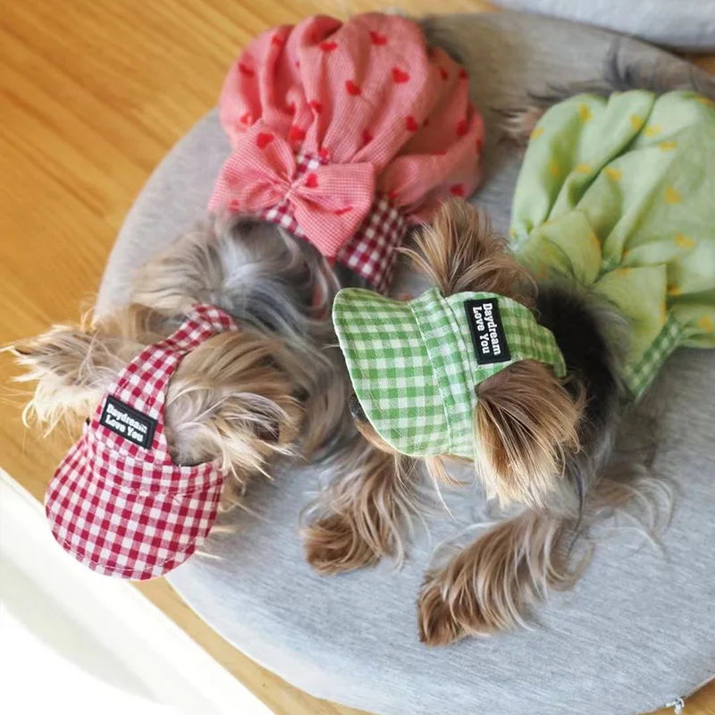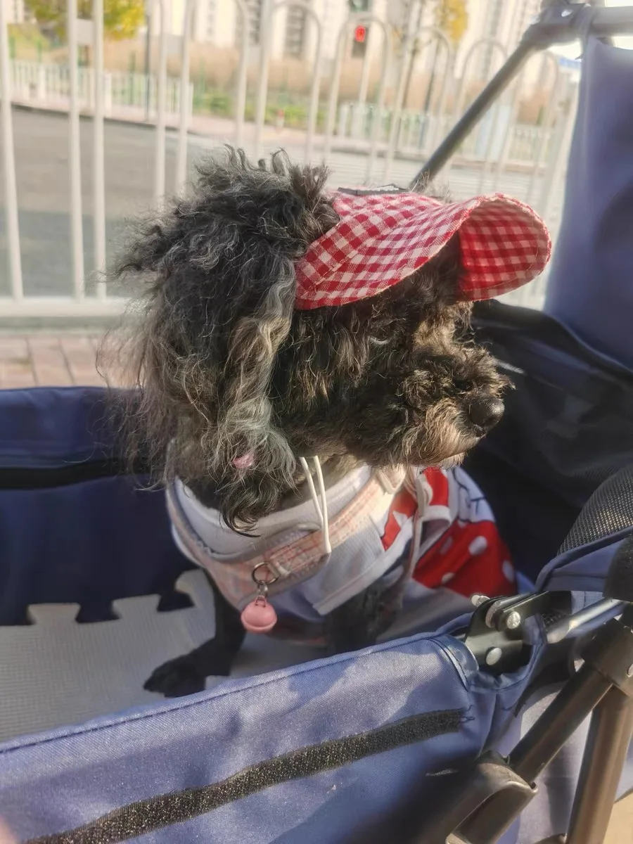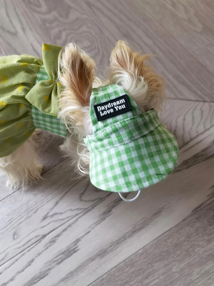 Gorra de béisbol para perro INS Kawaii, gorra con correa para el cuello, agujeros para las orejas lindos ajustables para perros pequeños de peluche Yorkshire, protección solar para exteriores