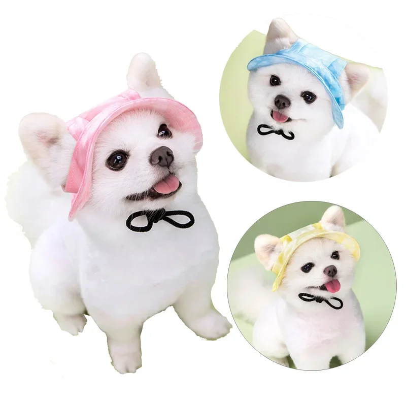 Gorro para mascotas con recortes para orejas, ala grande, estilo con cordones, tamaño ajustable.