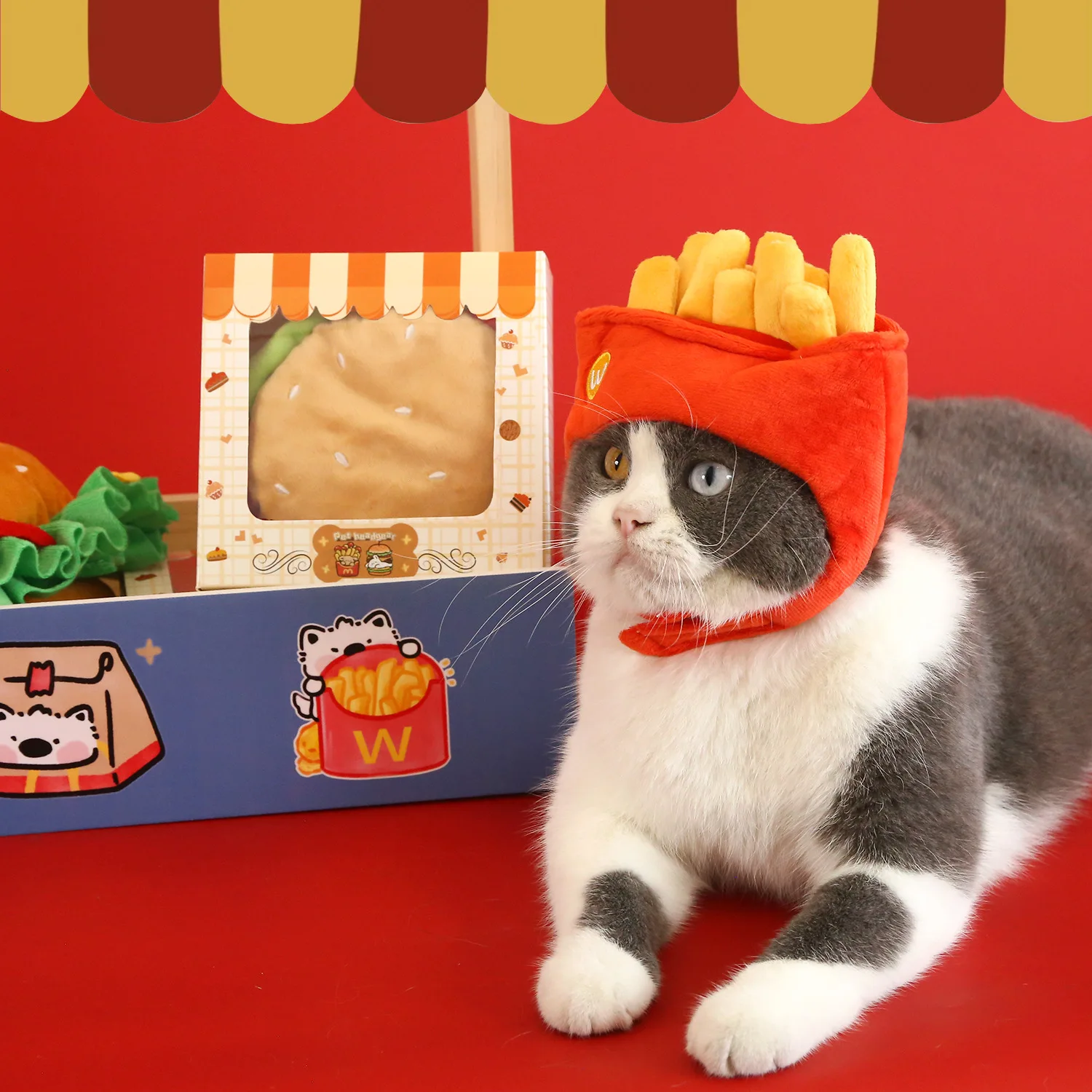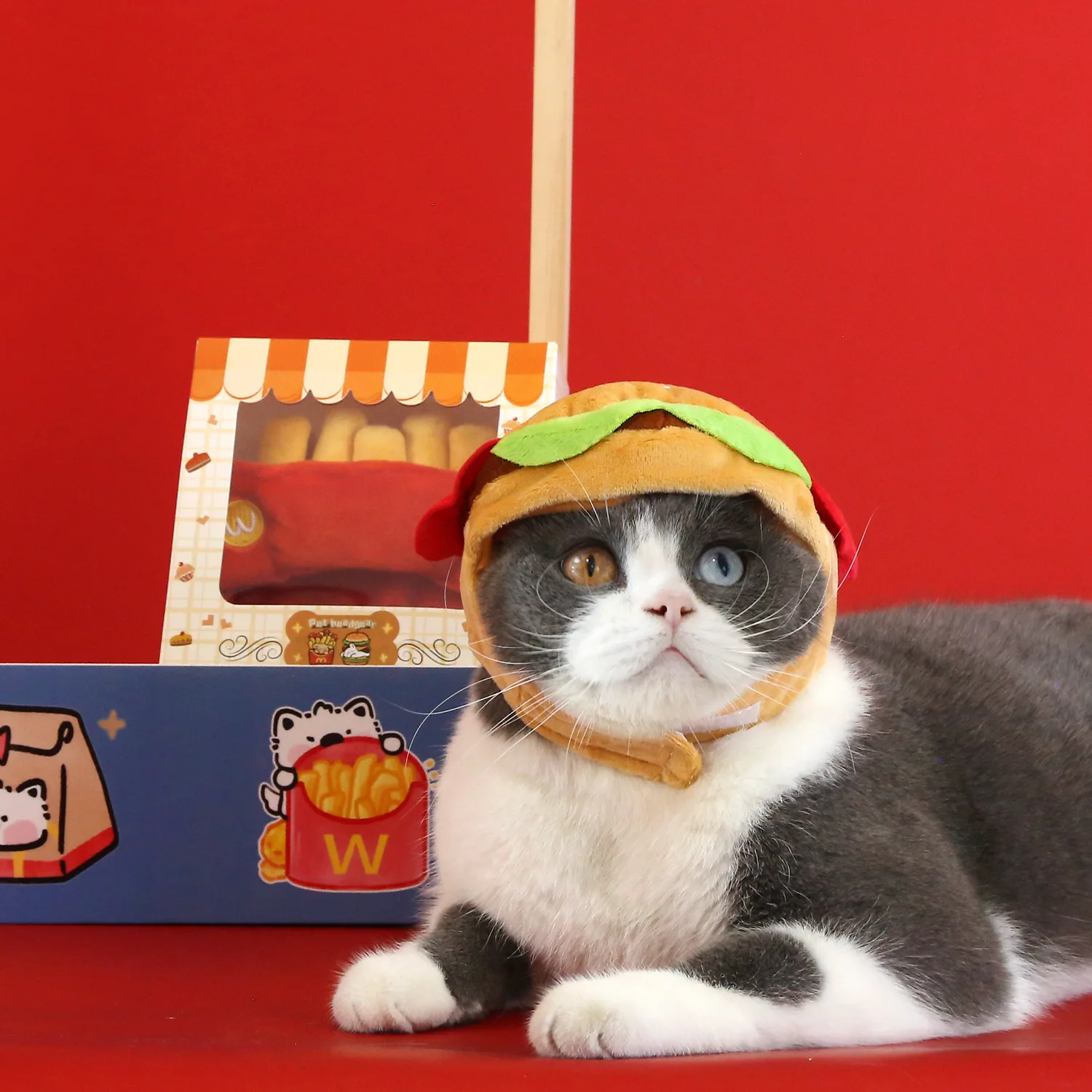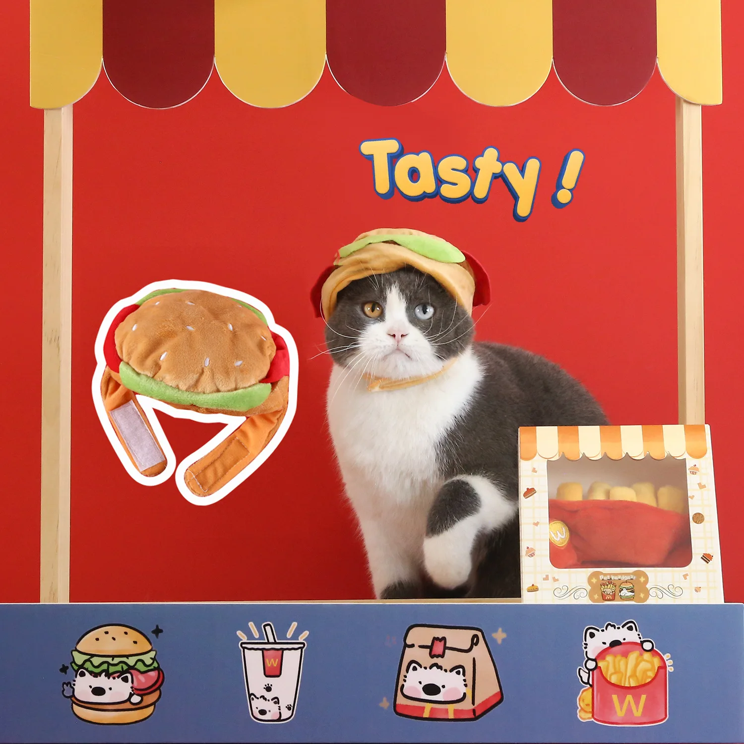 Gorro bonito de dibujos animados para mascotas, hamburguesa, patatas fritas, gato, oso de peluche, perro, fotografía, auriculares cálidos, accesorios para perros Pomerianos