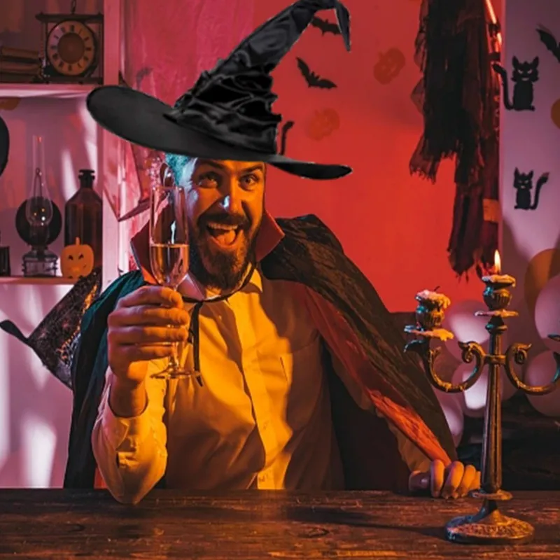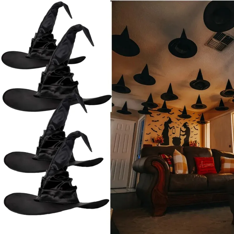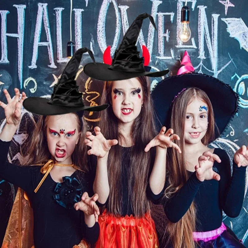 Sombrero de bruja para fiesta de Halloween, sombrero de bruja de tela Oxford negro, accesorios de maquillaje, sombrero de bruja para fiesta de Halloween