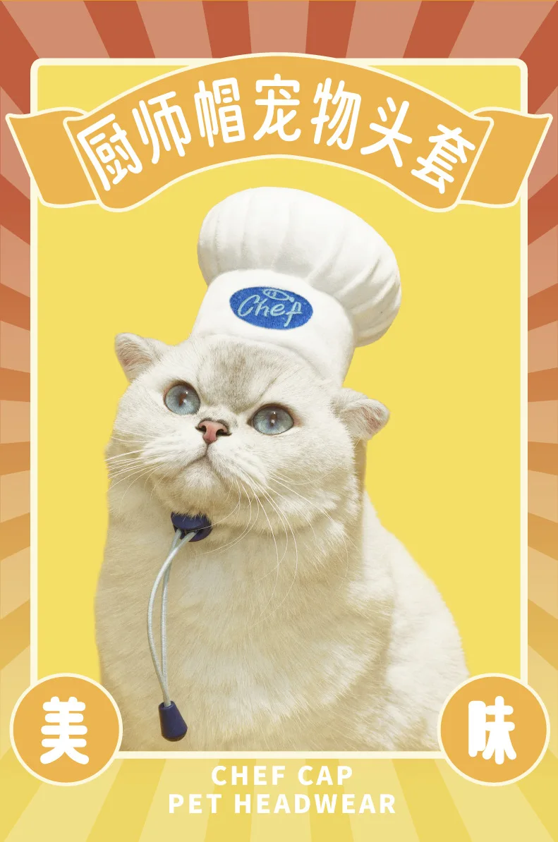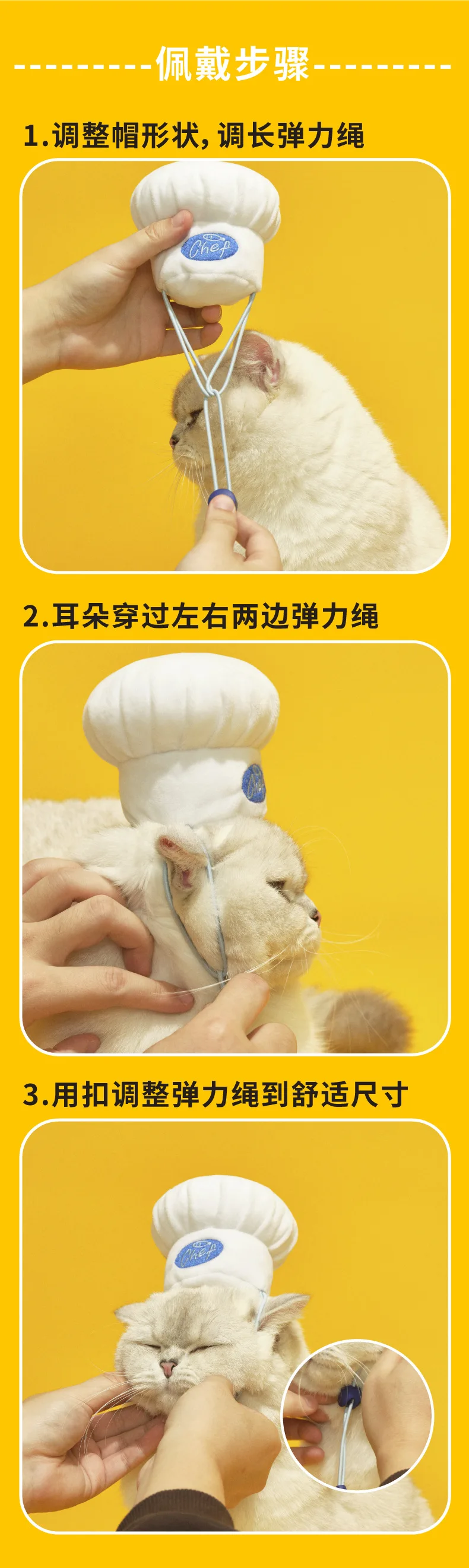 Gorro de Chef para mascotas, cubierta ajustable para cabeza de mascota, decoración para fotos de perros, suministros universales para mascotas, accesorios para perros pequeños