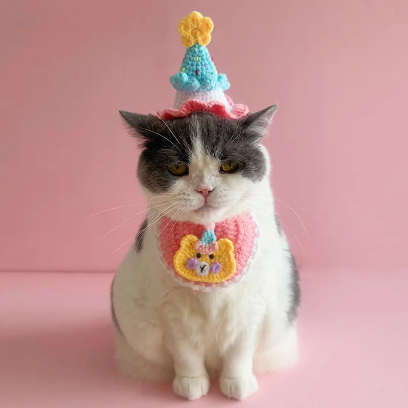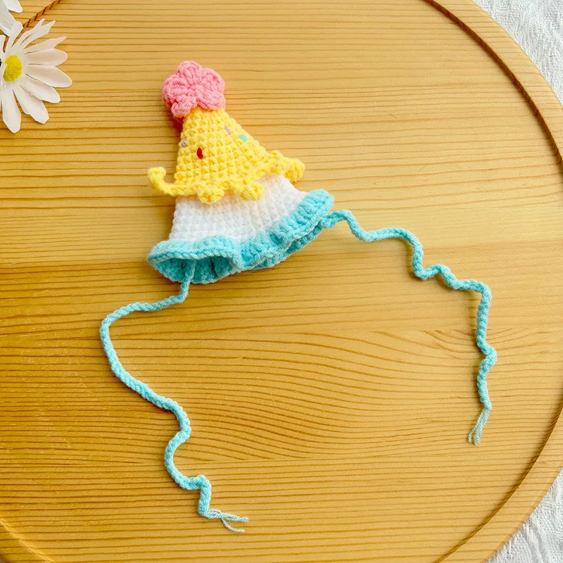 Gorro de cumpleaños tejido para perros, hilo de aseo tejido a mano para mascotas, gorro Floral pequeño, gorros para gatos, accesorios para perros pequeños y cachorros