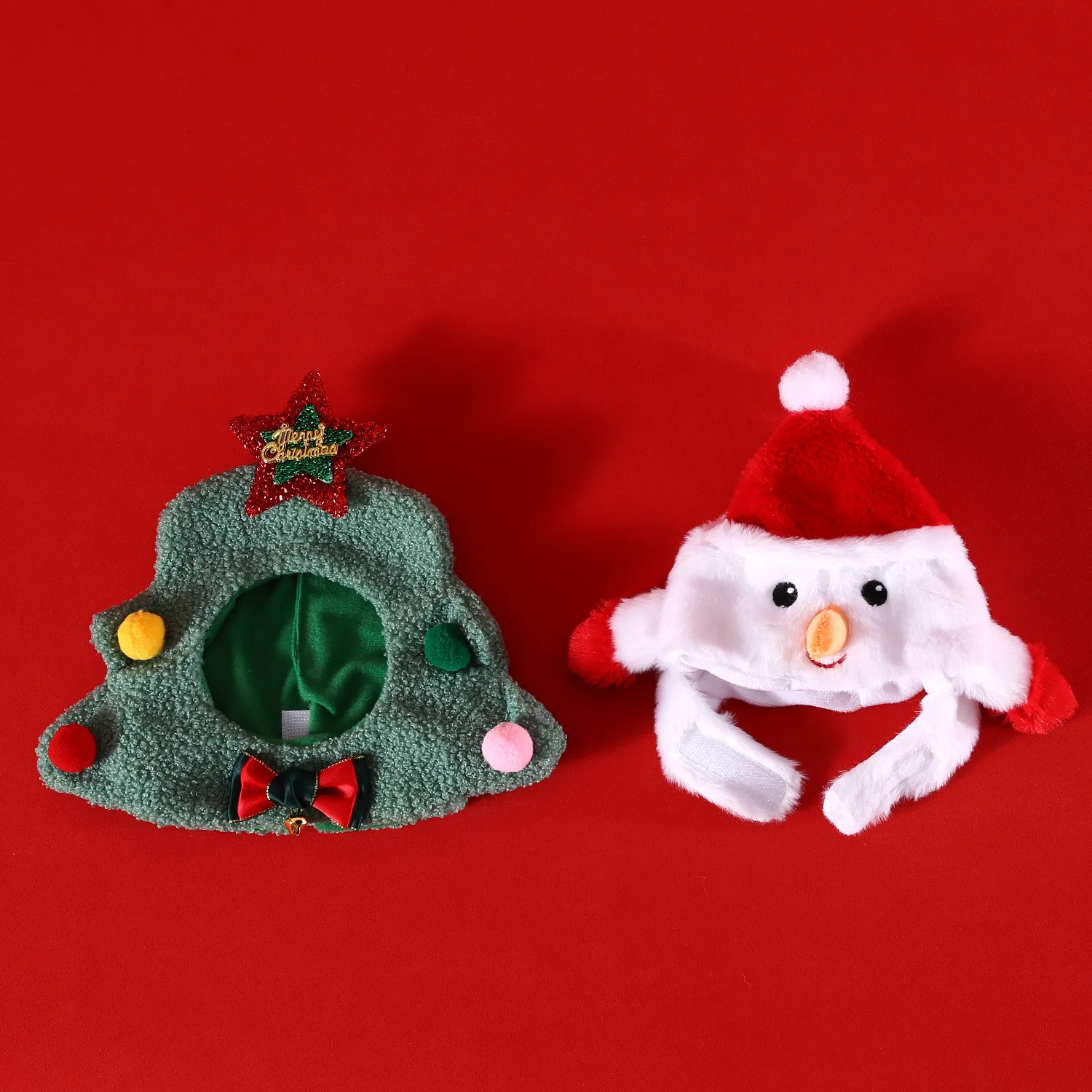 Gorro de felpa para mascotas, árbol de Navidad, muñeco de nieve, peluche de dibujos animados, bonito vestido, auriculares de vacaciones, lazo, accesorios para perros Pomerianos
