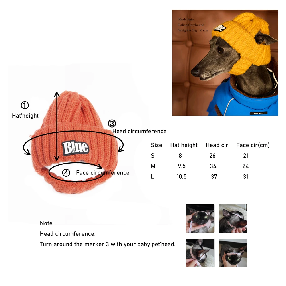 Gorro de lana tejido de galgo italiano hecho a mano a la moda en invierno decoración de cabeza de perro sombrero cálido para mascotas Whippet de primavera con orejas expostas
