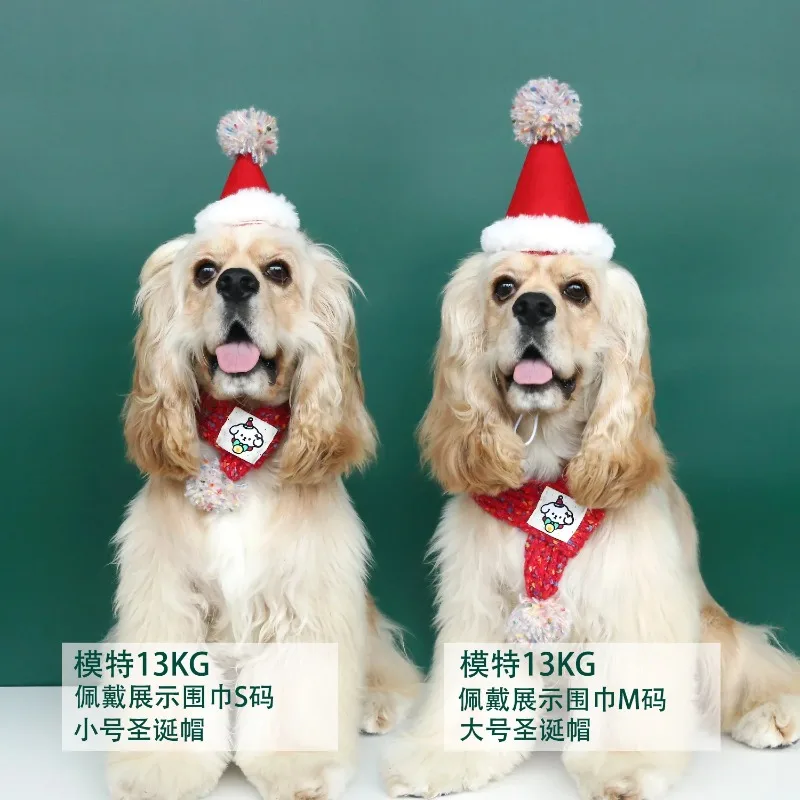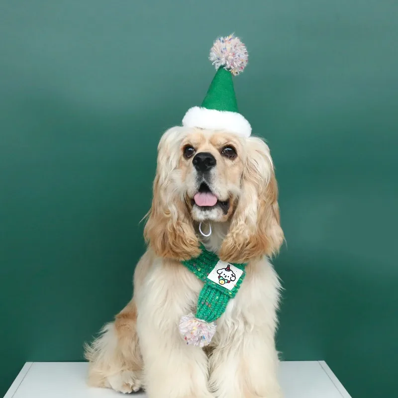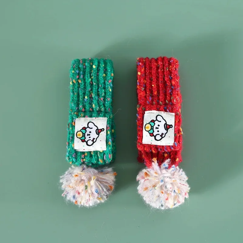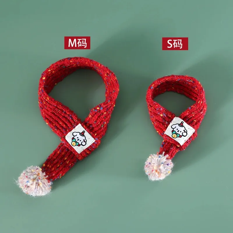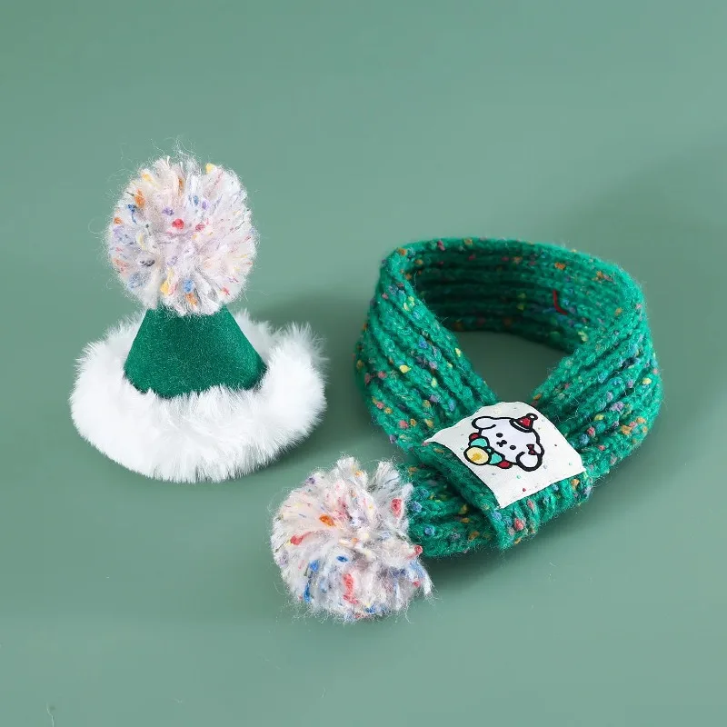 Gorro de Navidad bonito para perro mascota, bufanda de lana tejida con dibujos de bolas de pelo, fieltro para el cuello, decoración navideña cálida para año, accesorios para cachorros
