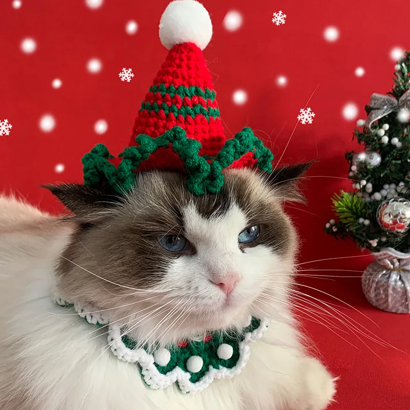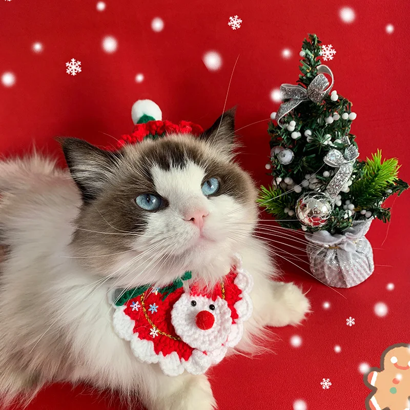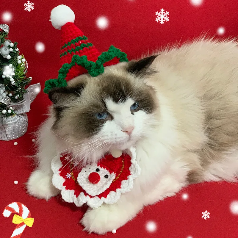 Gorro de Navidad para mascotas, bonito gorro de lana tejido, bufanda para gato, babero para perro, Collar bonito, accesorios para perros pequeños, accesorios para cachorros