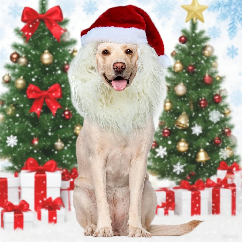 Gorro navideño para perro con melena de león, disfraces de Papá Noel, peluca de León realista para perro mascota con orejas, accesorios para mascotas, 1 ud.