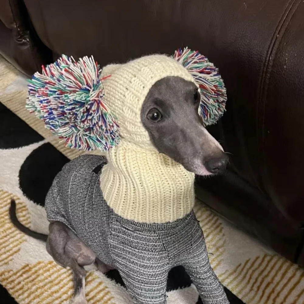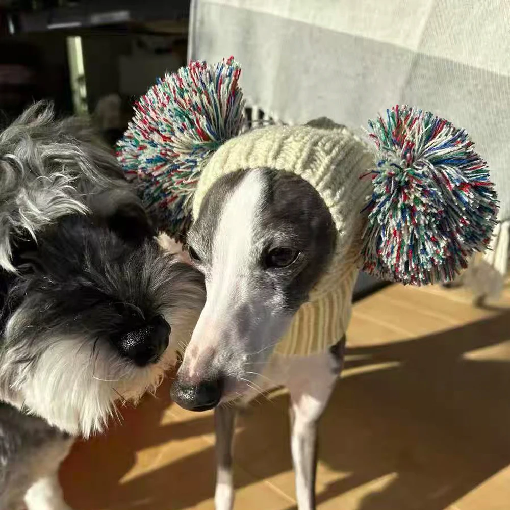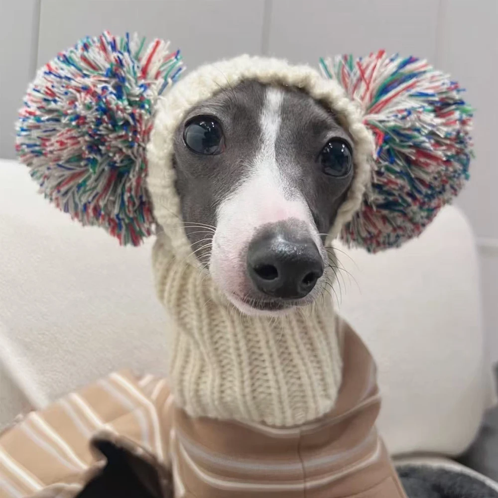 Gorro de punto con bola de moda para perros mediados de rumbo italiano en invierno, lindo disfraz Whippet, gorro cálido para mascotas en otoño