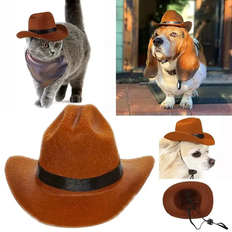 Gorro de vaquero para mascotas, gorro de Cosplay divertido ajustable para perros y gatos, accesorios perfectos para fotografía al aire libre, accesorios de rendimiento