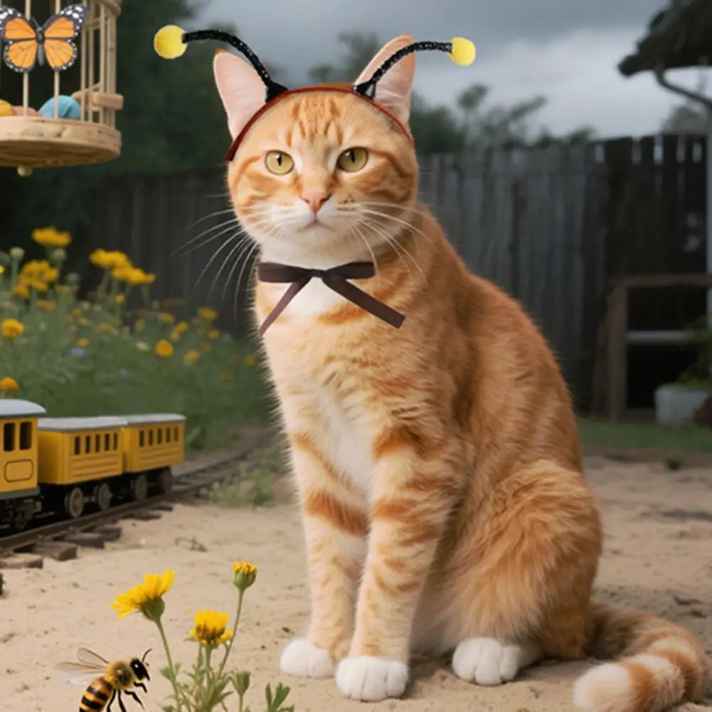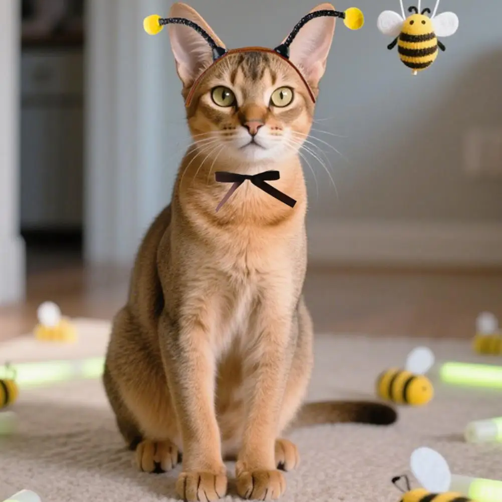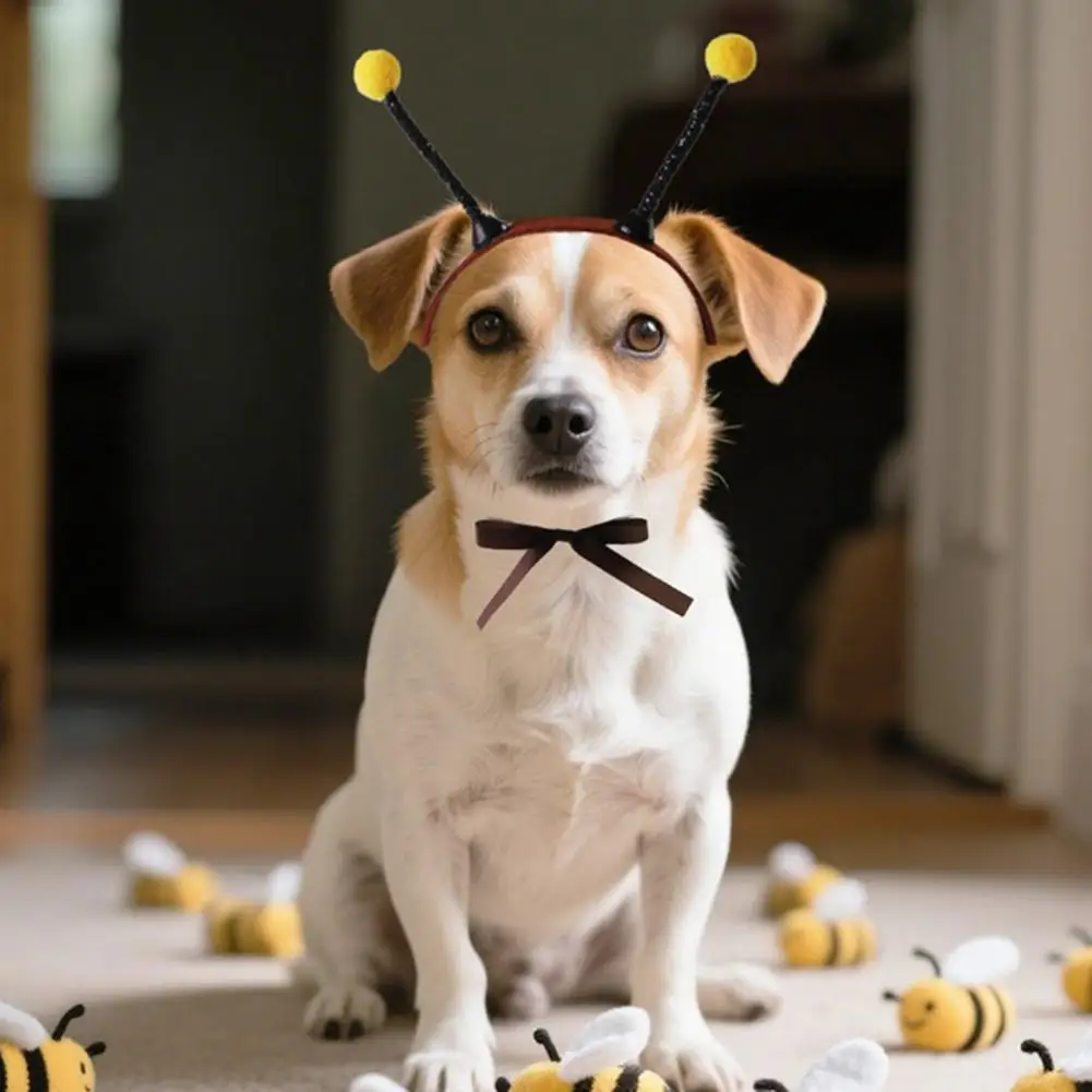 Tocados de abeja con antena, orejas, tocado para perros y gatos con orificios para las orejas, tocados para mascotas para gatos, perros pequeños, disfraz de fiesta festivo Bichon