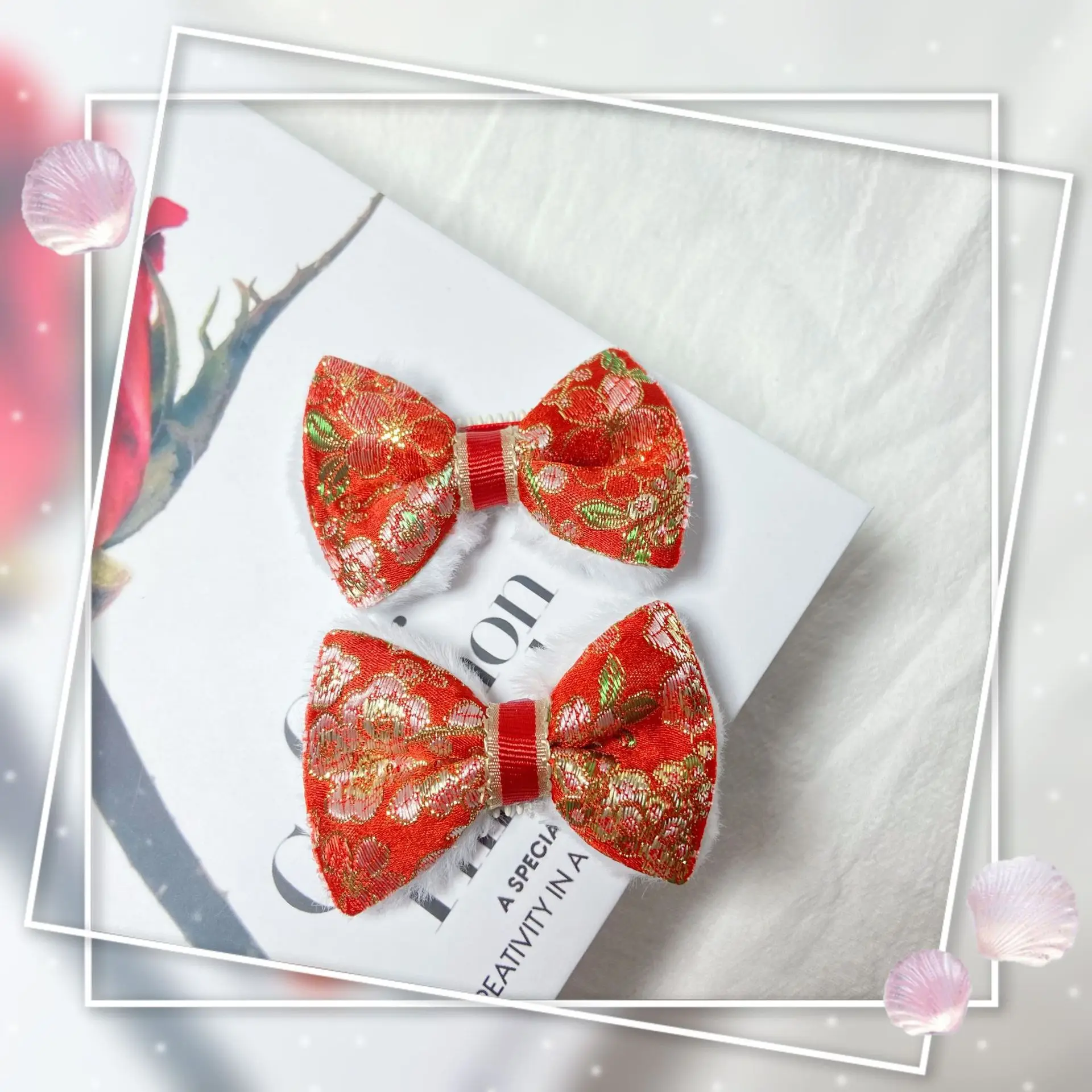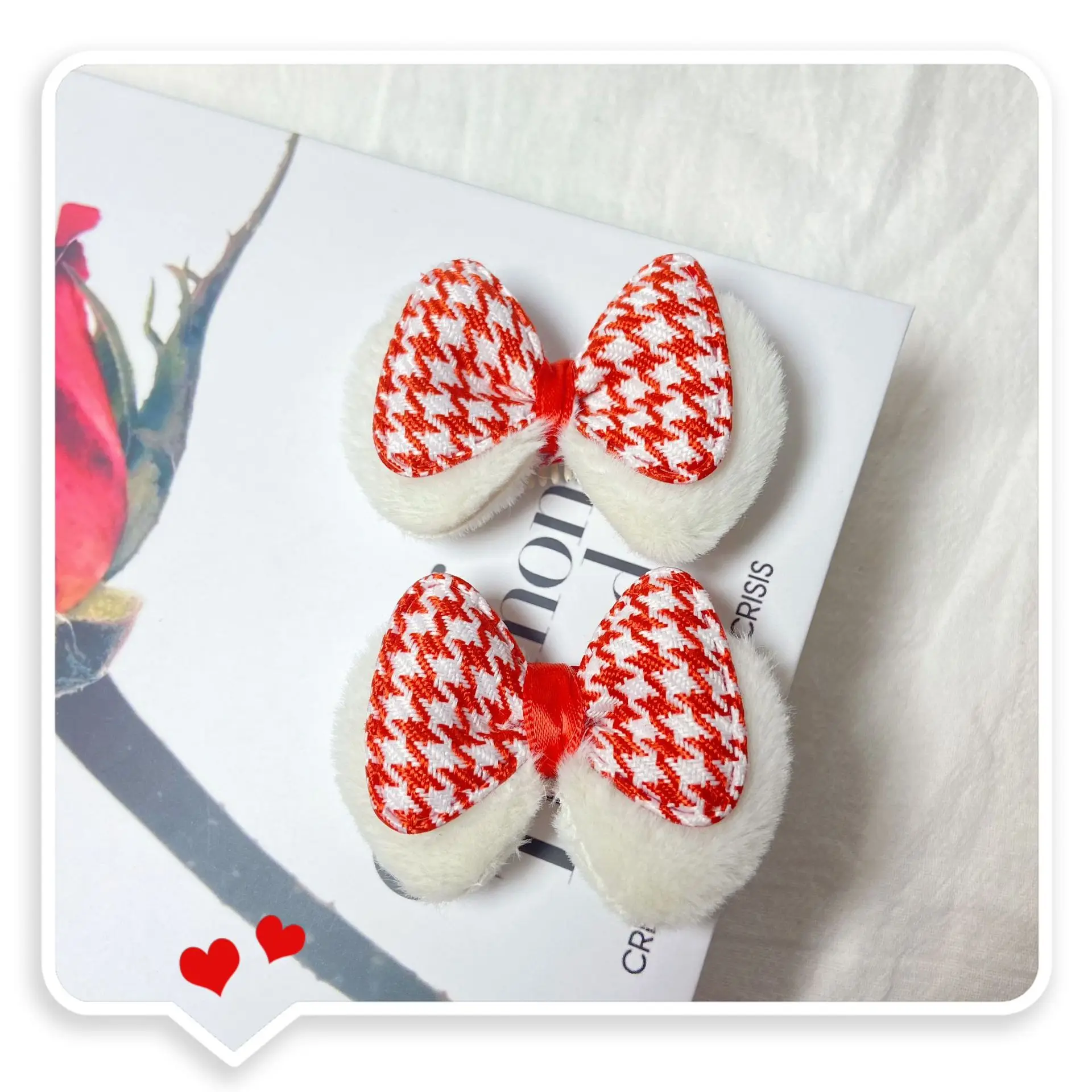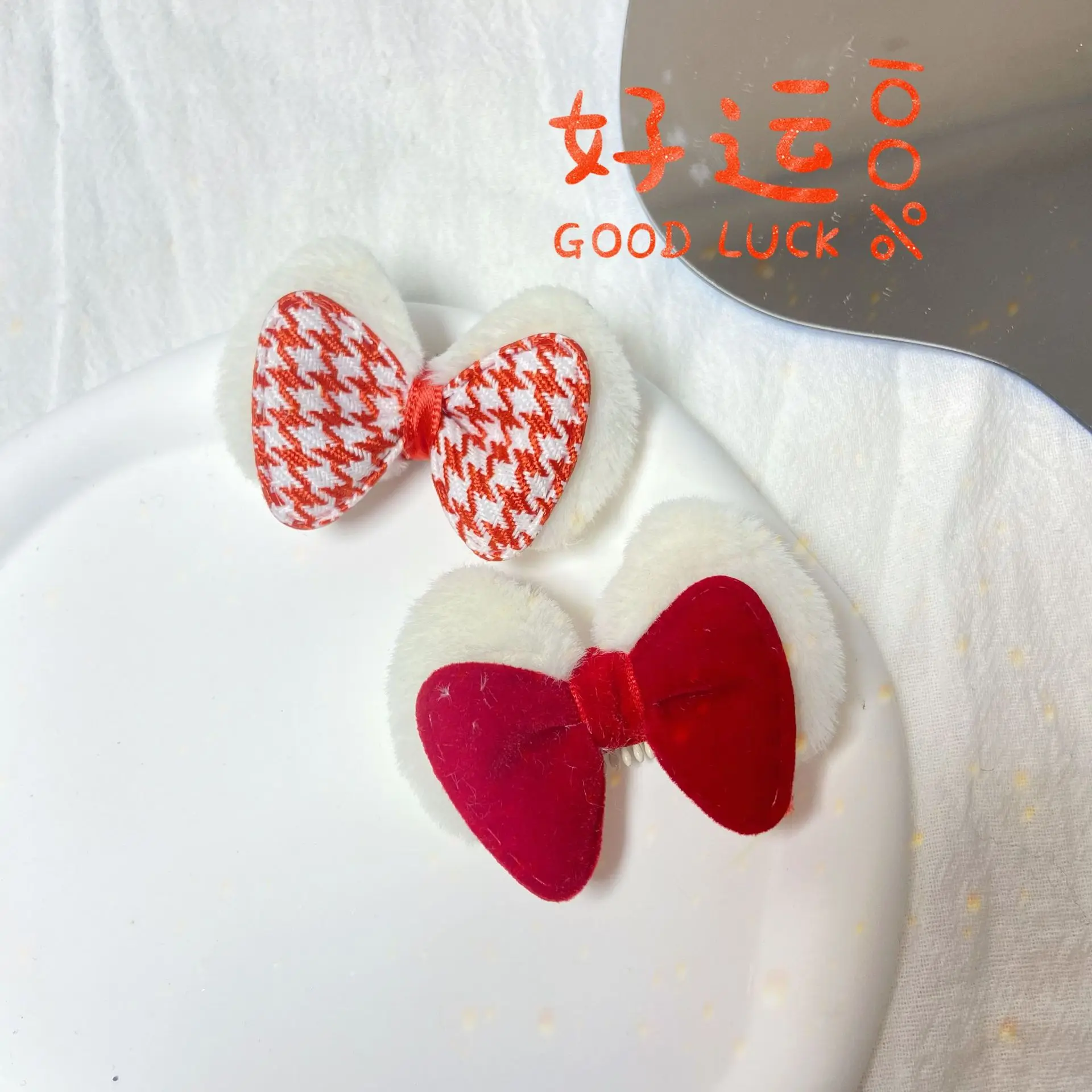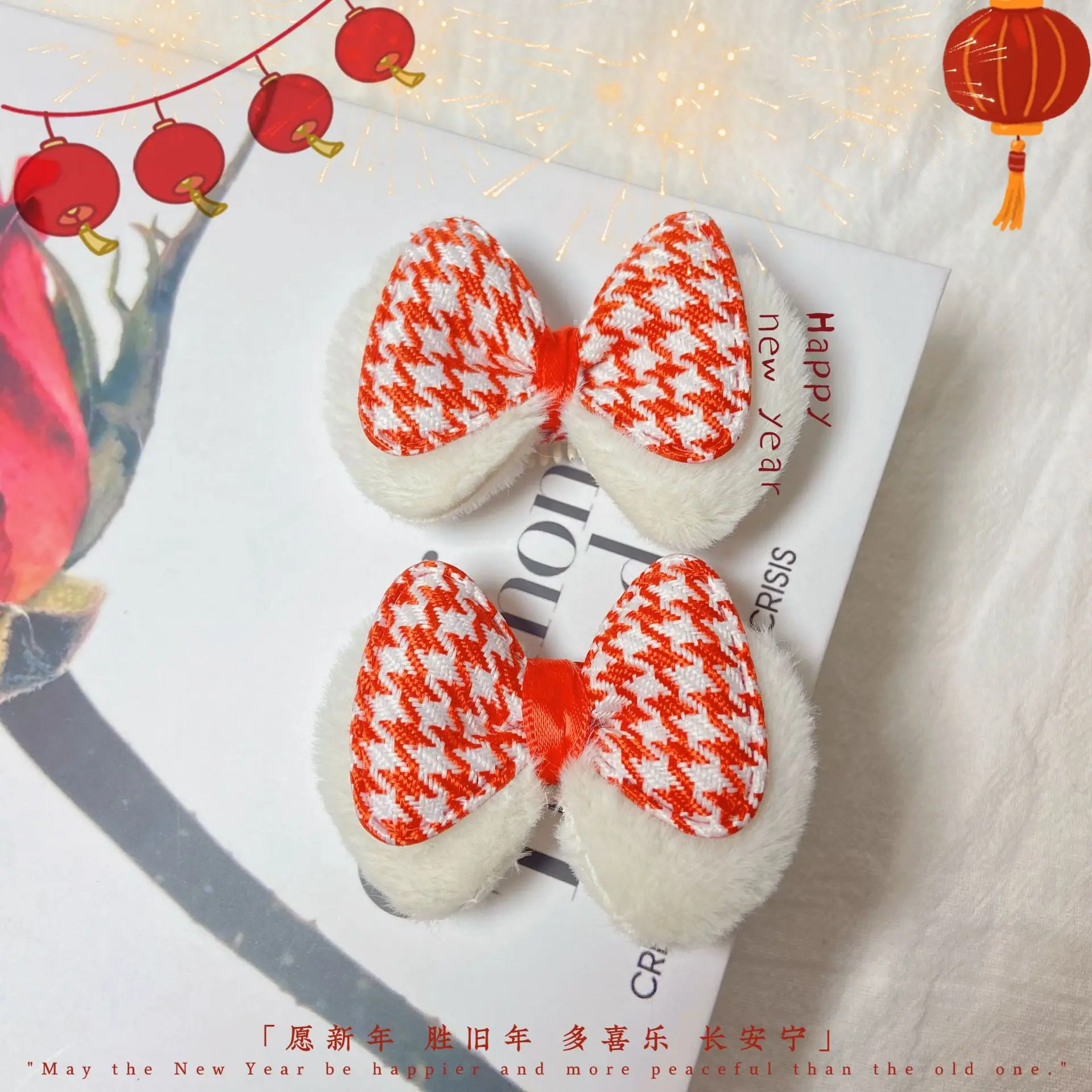 Gorros navideños para mascotas, Clip BB para mascotas, Clip de pelo a cuadros de conejo de terciopelo con diamantes dorados, accesorios para perros y gatos para Festival de Primavera