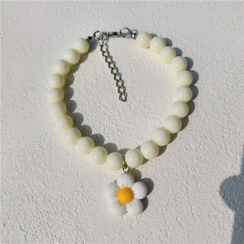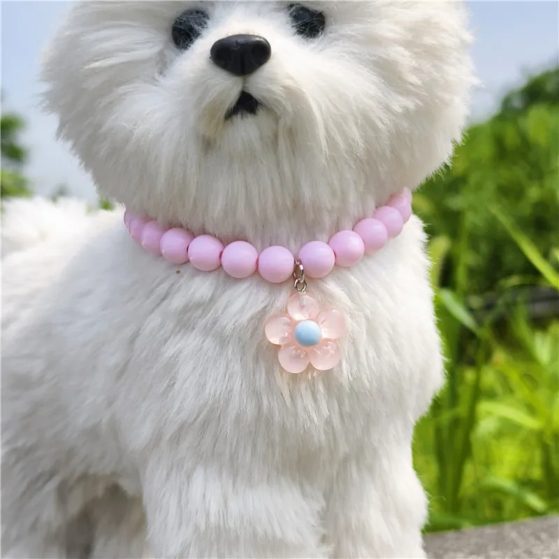 Gran oferta, Collar de flores para gatos, Collar ajustable de perlas para mascotas, Collar para perros, accesorios para cachorros, cadena para perros, producto de aseo para mascotas Chihuahua