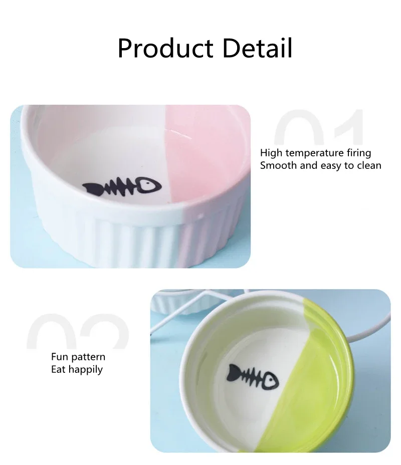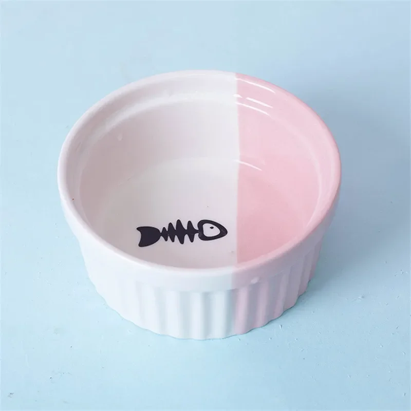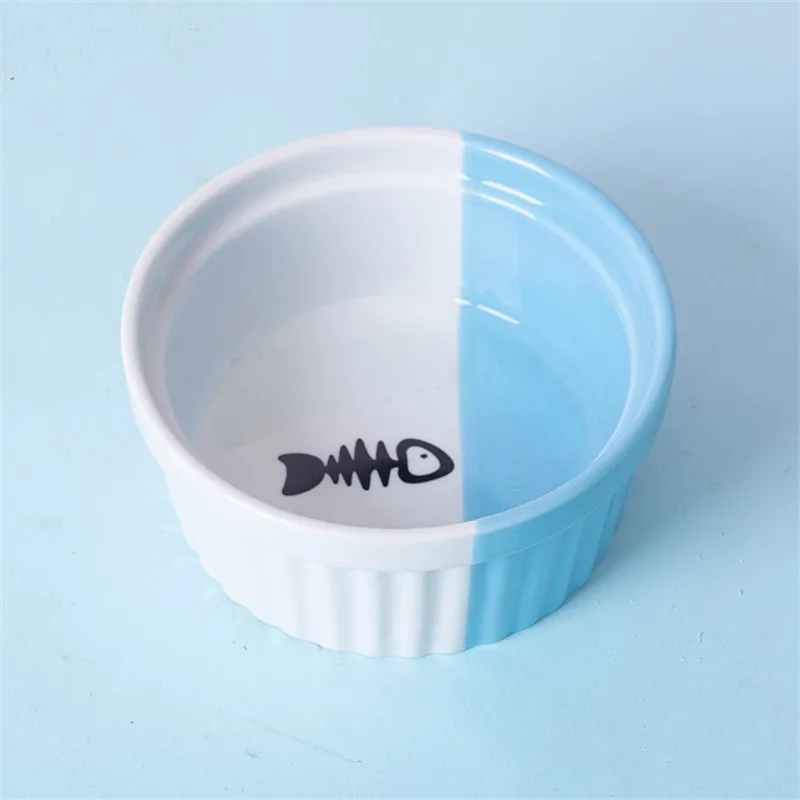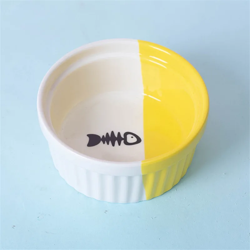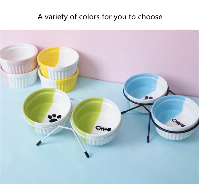 Gran oferta, cuenco de cerámica para perro con boca oblicua de pie alto, diseño de dibujos animados a la moda, alimentador para mascotas, cuenco para gato de dos tonos de Color, suministros para mascotas