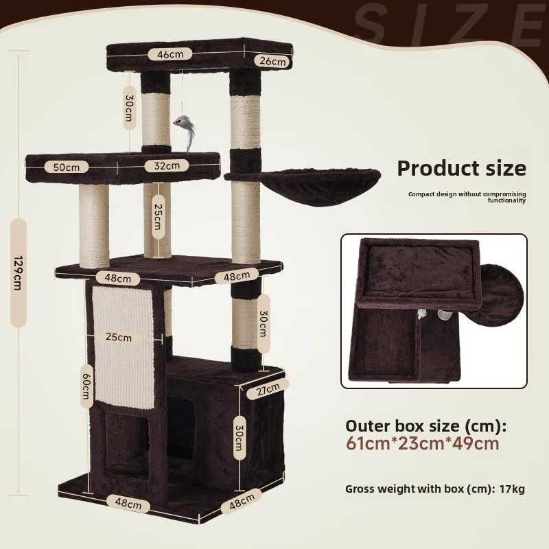 Gran Villa de lujo para mascotas de cuatro pisos, marco de escalada de Sisal para gatos, tablero rascador para gatos, productos para mascotas