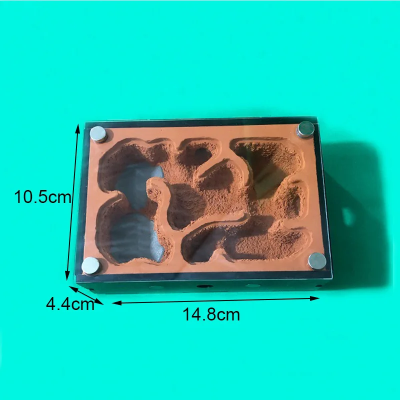6. Los imanes se instalan en la cubierta de vidrio del área del nido para facilitar la observación de hormigas y limpiar el área del nido.