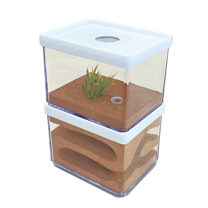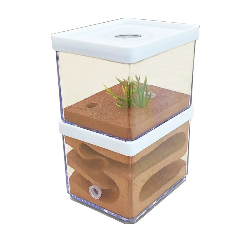 2. El nido se divide en dos partes. Separación seca y húmeda, las hormigas pueden elegir su humedad favorita para vivir.