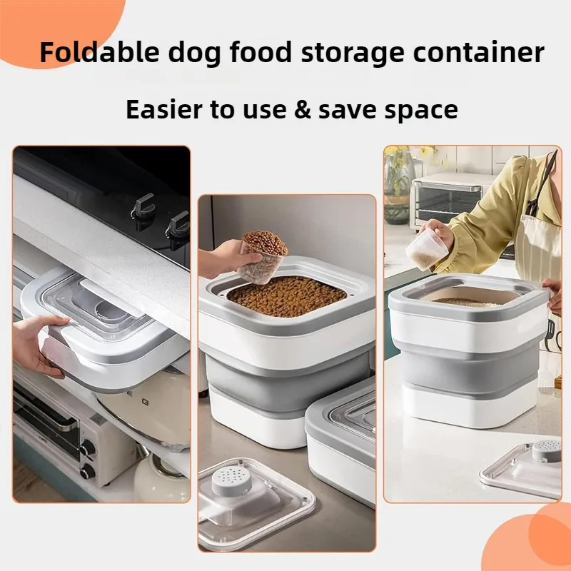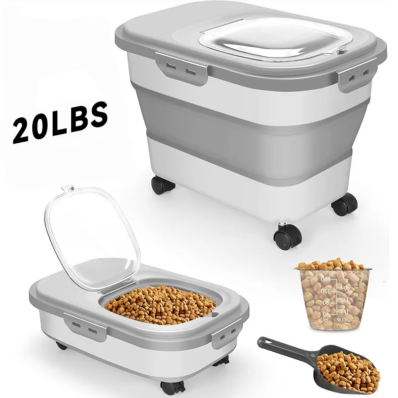 Großer Hundefutterbehälter, faltbar, für Welpen, Hundefutter, Eimer, Rad, Hunde, Leckereien, Aufbewahrung von Haustieren, Tier, stapelbare Trockenfutterboxen
