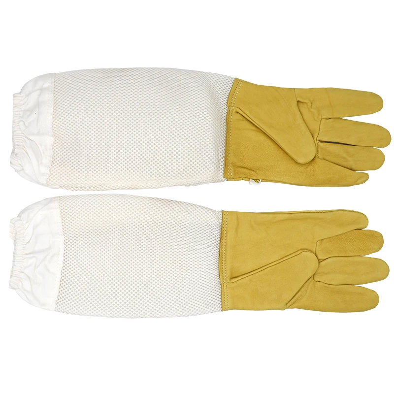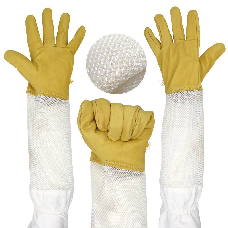 1 par de guantes de apicultura mangas protectoras transpirables Anti ABEJA/picadura guantes largos de piel de oveja para apicultor herramientas de Apicultura