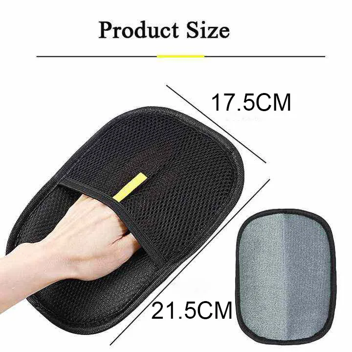 Marca: NONOR Nombre del producto: Guantes de depilación electrostática para mascotas Largo/Ancho: 21,5*17,5 Material: tela de malla, tela de cepillo Color: Negro y amarillo Uso: Depilación y limpieza del hogar.