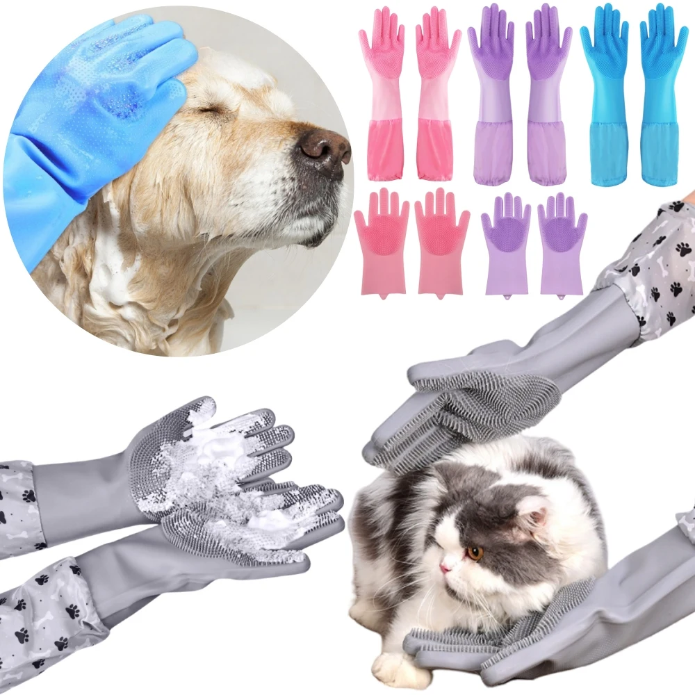 Guantes de aseo para mascotas de 160G más gruesos, guantes de limpieza para baño para perros y gatos, cepillo de depilación de residuos para perros, depurador de champú, accesorios para mascotas