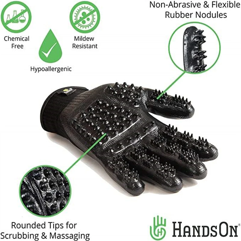 El guante original patentado para el cuidado de mascotas: arregla a tu mascota cómodamente con nuestros guantes livianos, diseñados con nódulos de goma para masajes calmantes que imitan el suave toque de las cerdas flexibles.¡Diseñado para adaptarse a todas las personalidades de las mascotas y lo suficientemente resistente como para soportar baños, mordiscos divertidos y mucho amor!