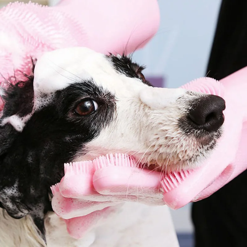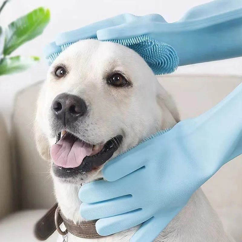 Guantes de baño para mascotas, suministros de limpieza para el cuidado de perros y gatos, guantes de depilación de silicona antimordida, champú indirecto, protección de la piel de las manos