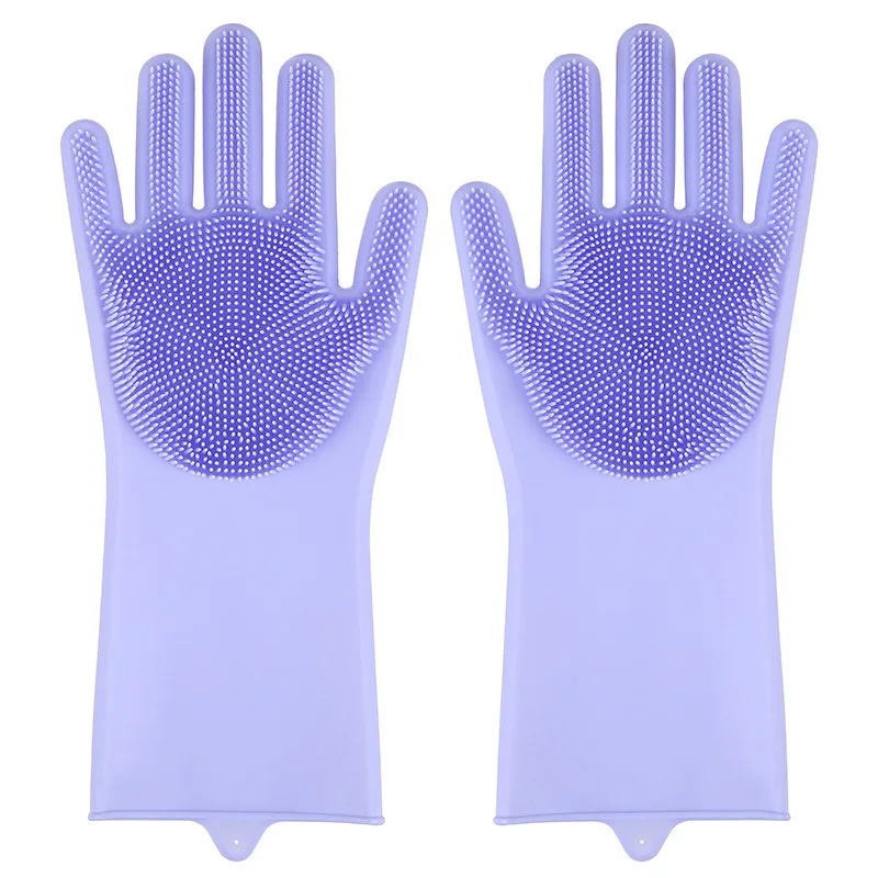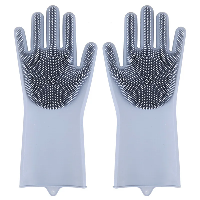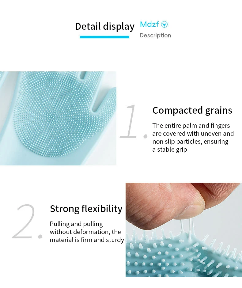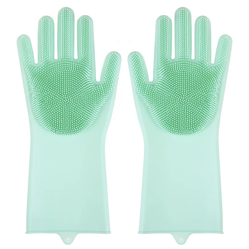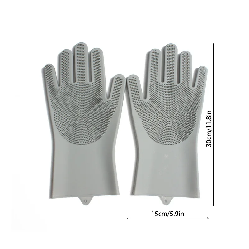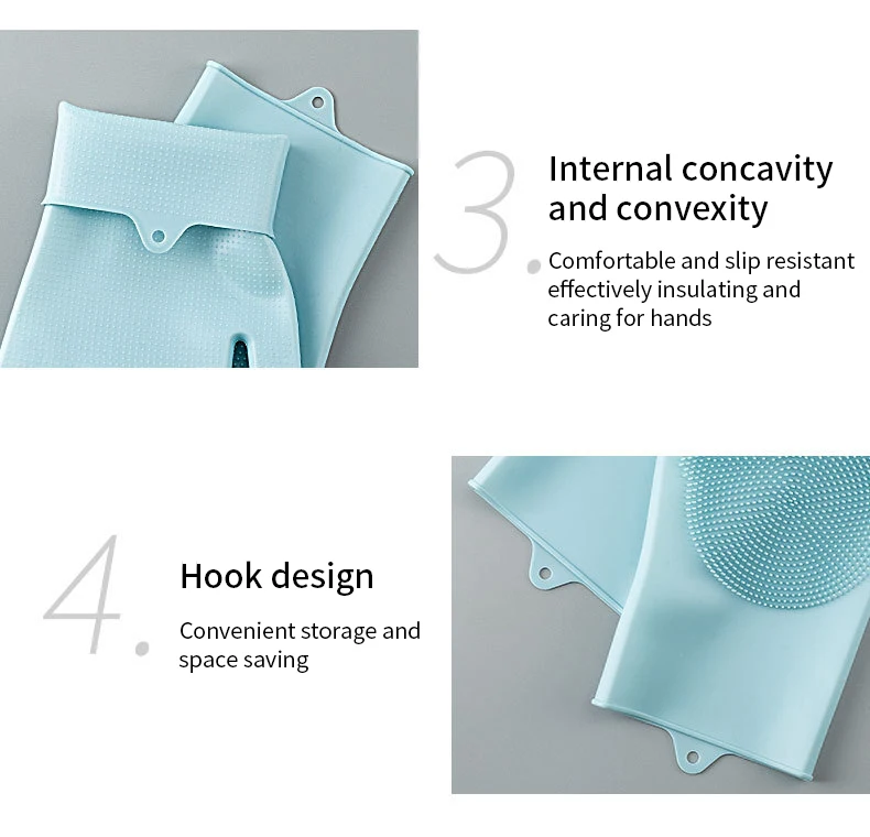 Material: silicona: los guantes están hechos de silicona, que es flexible y antiadherente, lo que facilita la limpieza de platos y otros utensilios de cocina.