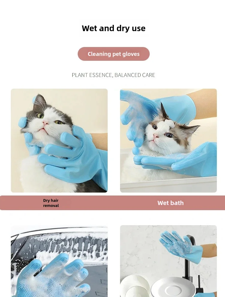 USO VERSÁTIL: Los guantes para mascotas son ideales para perros, gatos, caballos, conejos y otras mascotas de pelo largo y corto, cuidando el pelo de forma rápida, suave y eficaz.También se puede utilizar para la cocina, limpiar el baño y la habitación de la cama, lavar platos, quitar el polvo del armario, limpiar frutas y verduras.