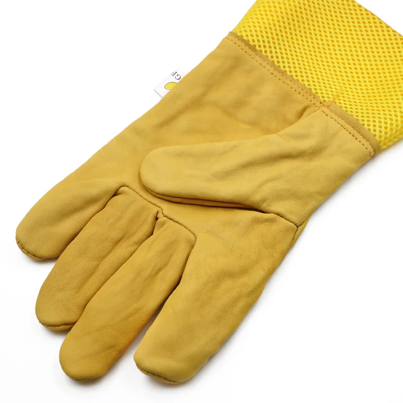 Guantes de apicultura Guantes de piel de cabra con red amarilla Herramientas de guantes protectores de abeja